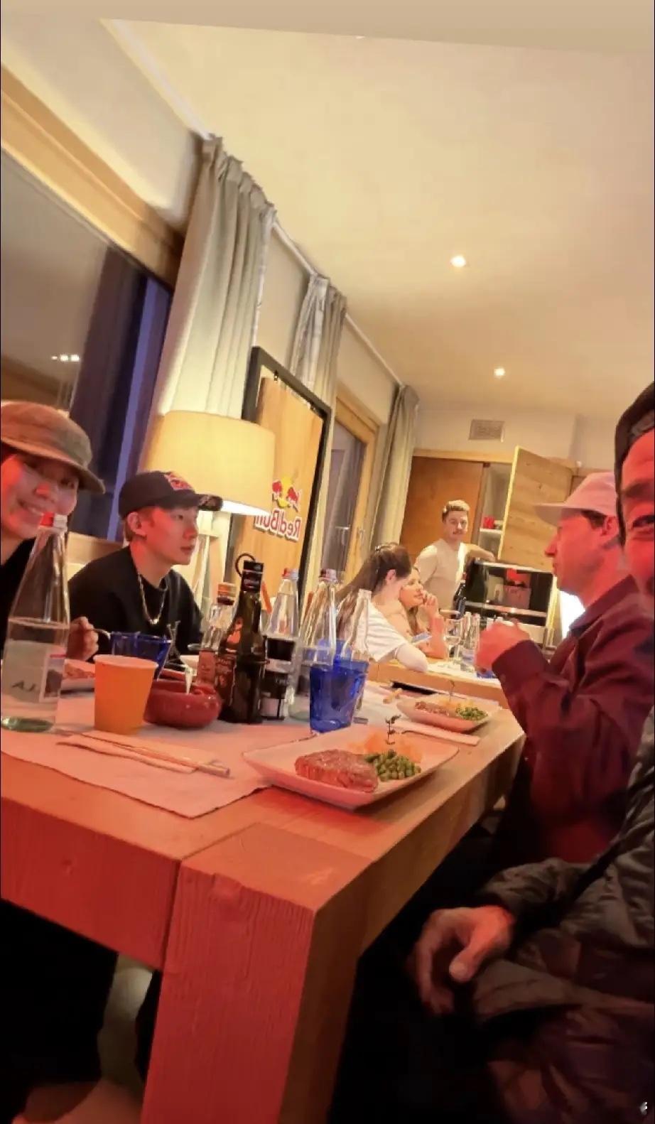 米兰冬奥会夺得铜牌后,邀请日本教练佐藤康弘到红牛在意大利阿尔卑斯山脚下的滑雪场小屋设置的餐厅吃西餐,氛围感拉满。
