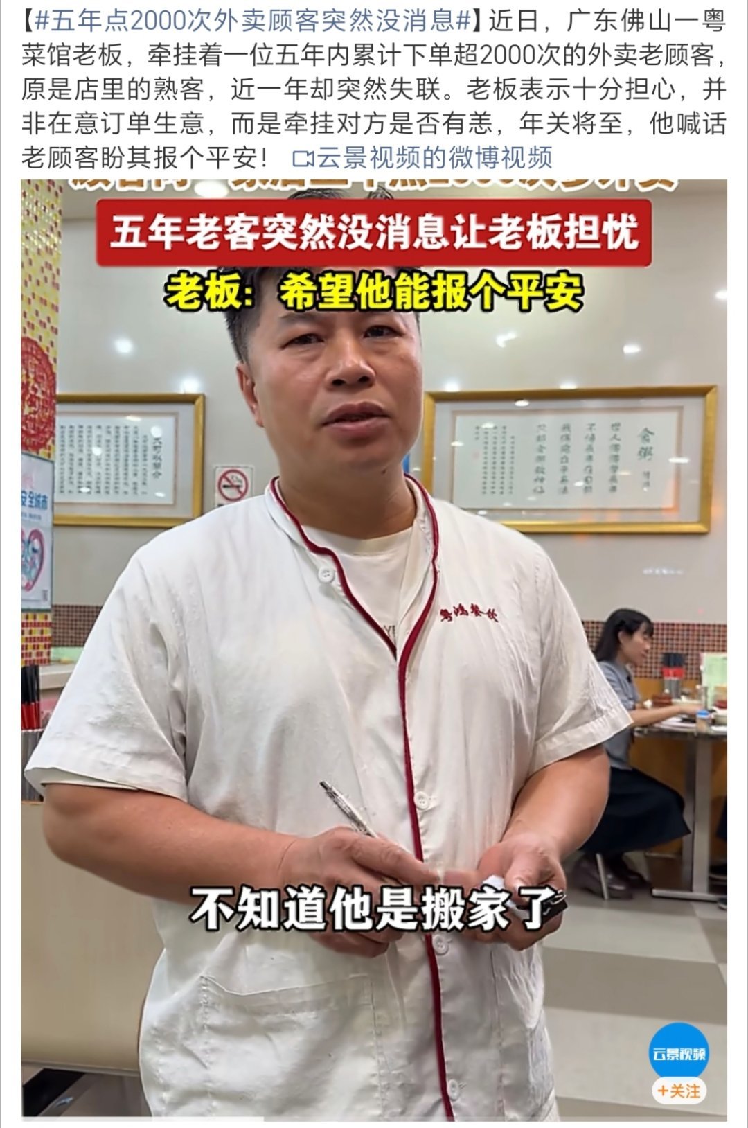 五年点2000次外卖顾客突然没消息食客和老板间的双向奔赴~希望会有好消息 或者没有坏消息吧大过年嘞 一切都好
