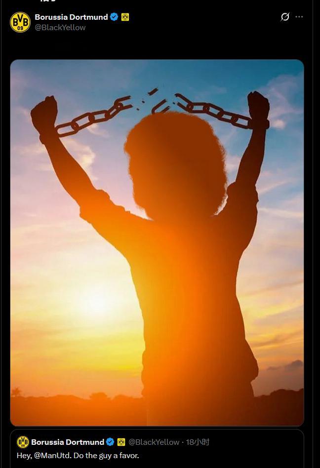 2.上面曼城的推还是暗戳戳。多特蒙德英文推直接就明着来了。