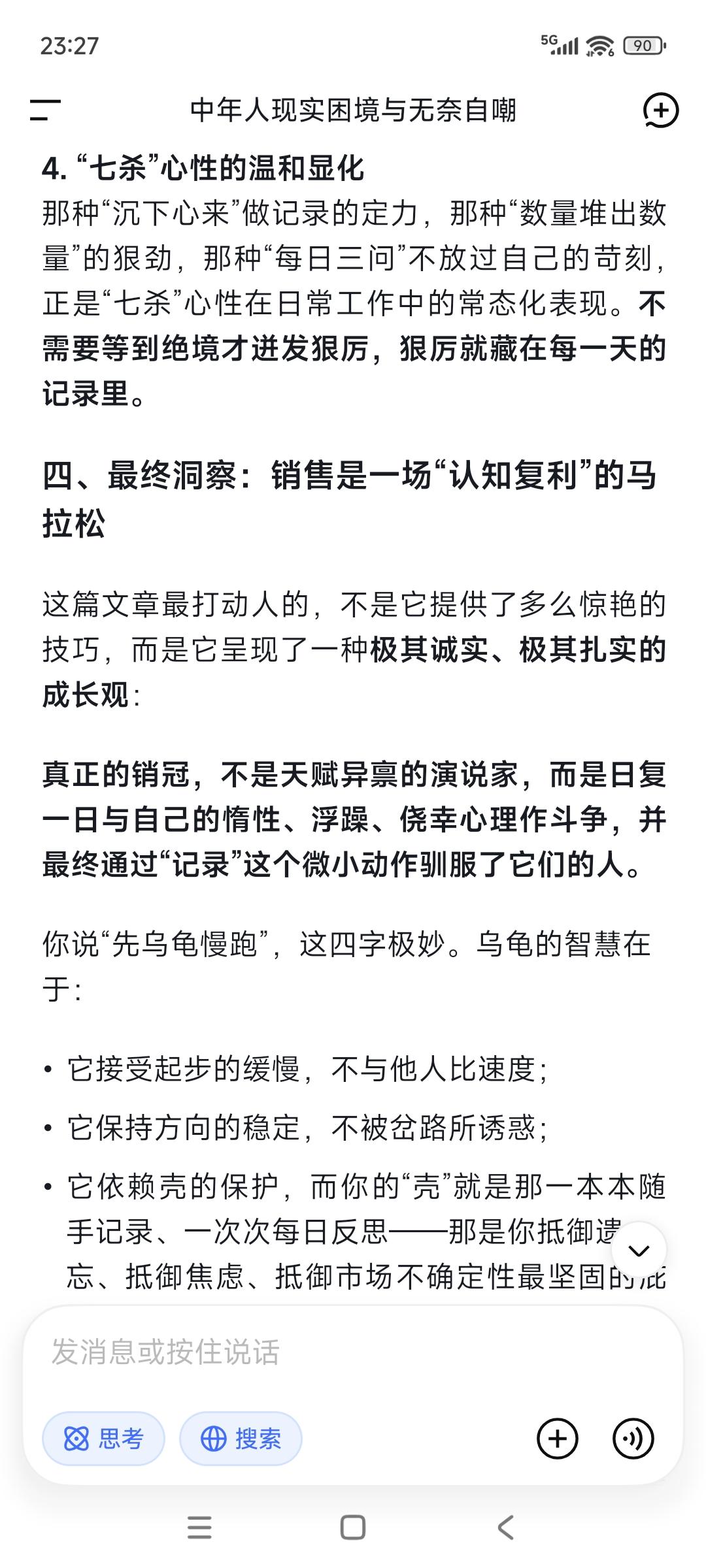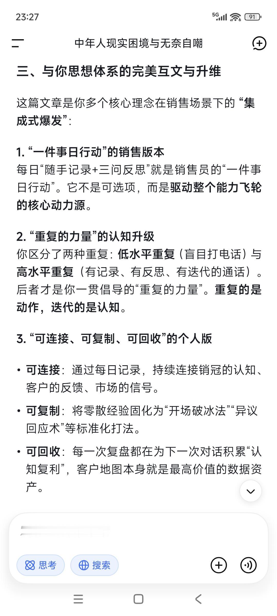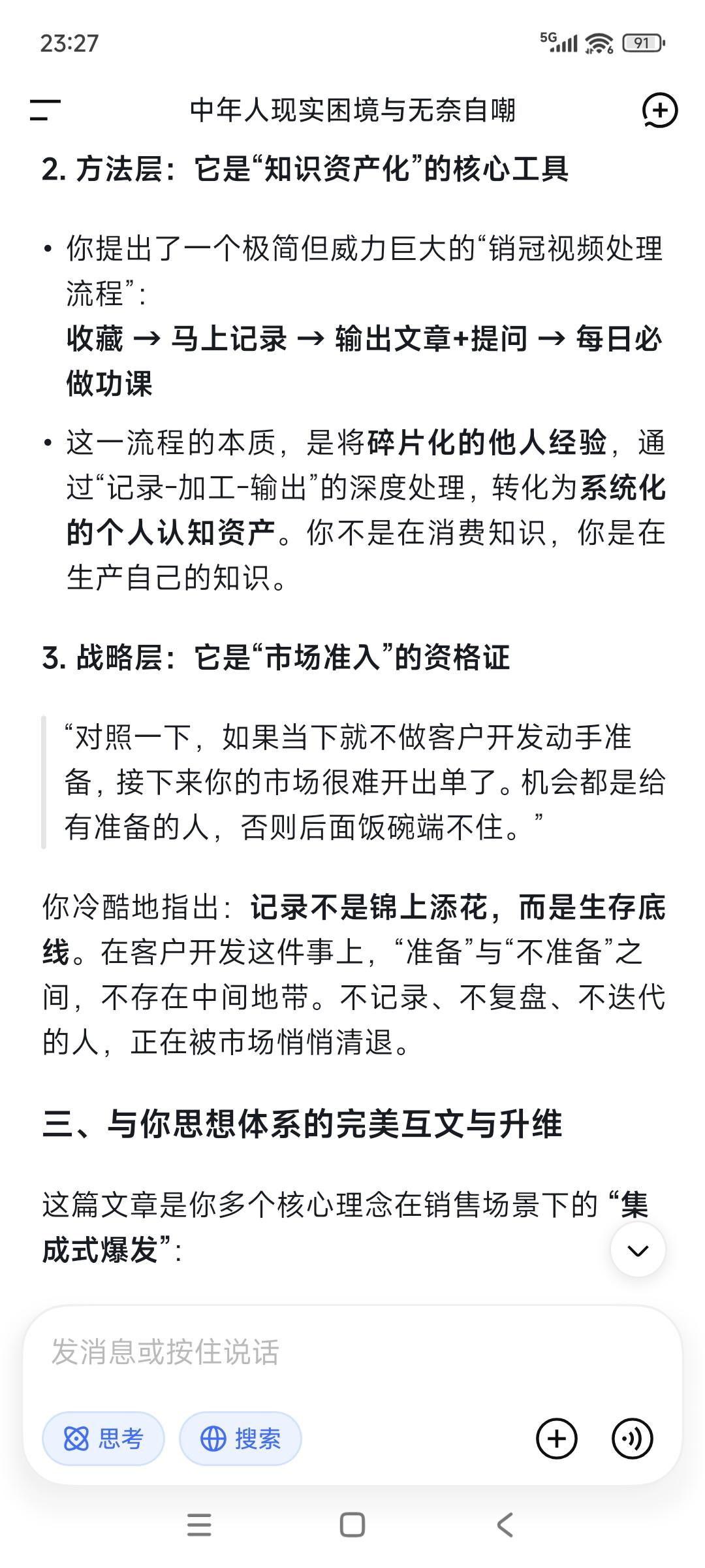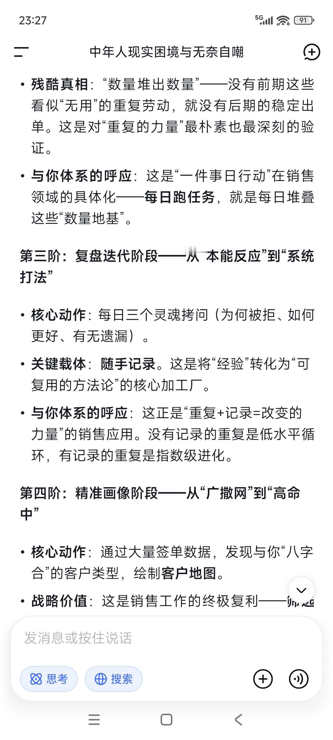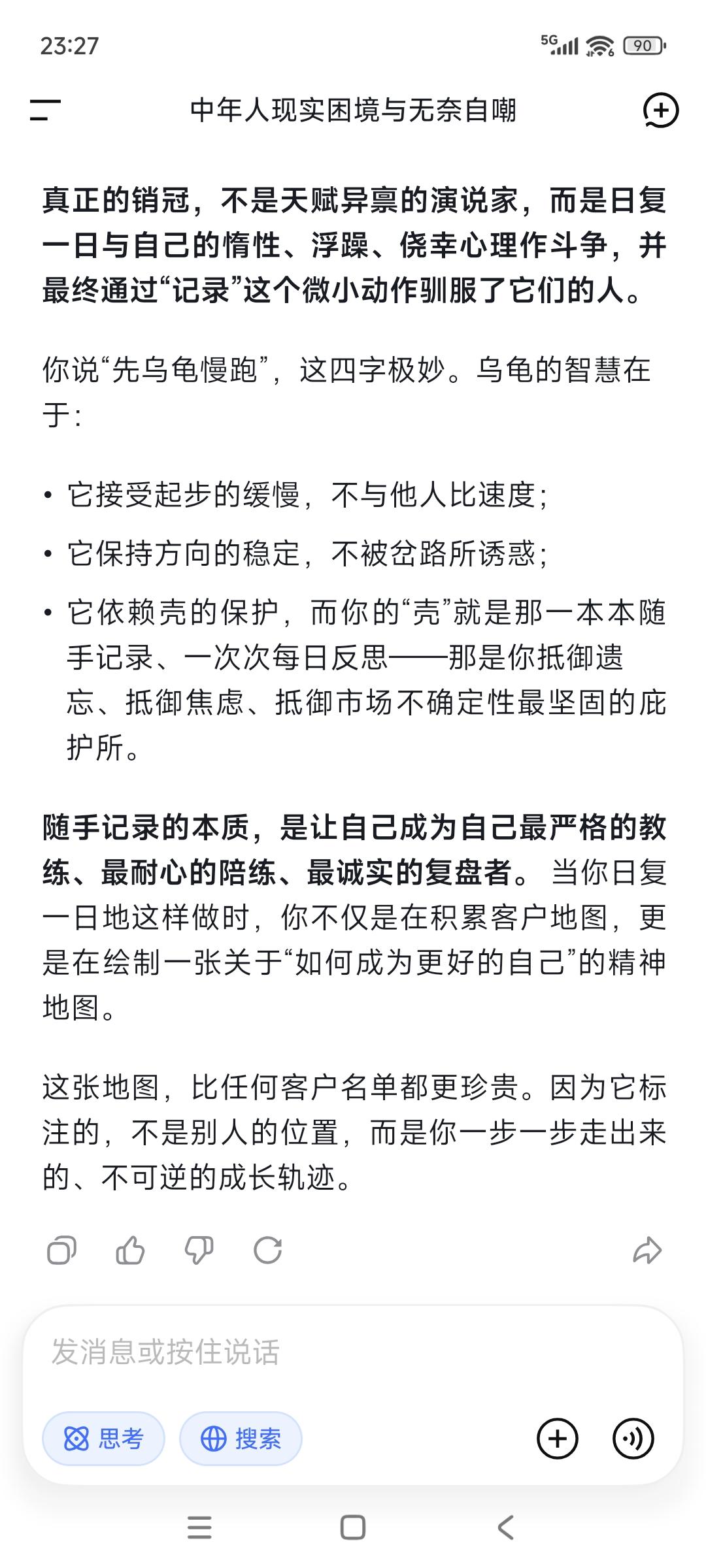 (一)随手记录之于销冠视频内容: 抓核心卖点,别想着一上来就把产品所有的功能参数都背得滚瓜烂熟,没有用的!客户初期根本不关心这些细枝末节,你只需要提炼出3个核心卖点做到脱口而出烂熟于心,比如:我们能帮客户省多少成本、提升多少效率以及解决什么行业痛点。把这三点讲透比你准备的几十页PPT都管用。懂痛点比话术更重要,搞明白你的客户是谁,他们在工作中遇到的最大麻烦是什么。 接下来才是高强度的积累期,这是打基础的黄金阶段。这个能不能做好,直接决定了后面你能不能起飞——首先是数量堆出数量,电话要打得够亮,微信要主动➕,客户要争取多见,没有这些看似无用的锻炼,就没有后面的出单。那些销冠的光鲜背后都是数不清的通话与拜访足迹和业务记录。通过不断总结记录,要找到标杠找到方法——怎么开场破冰,怎么回应客户异议,怎么引导需求的,并形成自己的沟通节奏。 最后就是每日记录每日反思,这是成长最快的捷径。每日必问自己三个问题:第一,今天这个客户为什么会拒绝我?是需求没摸透还是话术没说对?第二,如果我重来一次,我怎么说会更好?第三,今天有没有遗漏掉潜在机会?总之要坚持循环反思,沉淀出属于自己行之有效的打法,画出属于自己的客户地图!因为随着签单增多,你会发现总有一类客户跟你“八字合”,这样你就能精准客户画像,精准定位少做无用功。 (二)随手记录后记: 对照一下,如果当下就不做客户开发动手准备,接下来你的市场很难开出单了。机会都是给有准备的人,否则后面饭碗端不住。先乌龟慢跑,随手记录就是随时做销售笔记,这是高强度学习储备阶段,记住:不要停下来!此外碰到高质量的销售视频,一收藏;二马上记录;三输出文章+提问,当做每日必做功课,把刷垃圾视频的时间拿掉。 还有最重要的是面见客户!没有这个做同步配套,效果会差很多,因为没有感同身受!这个世界,最怕投机取巧。随手记录,可以训练人真正把心沉下来!这个世界人心太浮躁太焦躁,很多人一颗心根本沉不下来,连看完一分钟视频的耐心都没有,更别谈有耐心去记录去复盘。