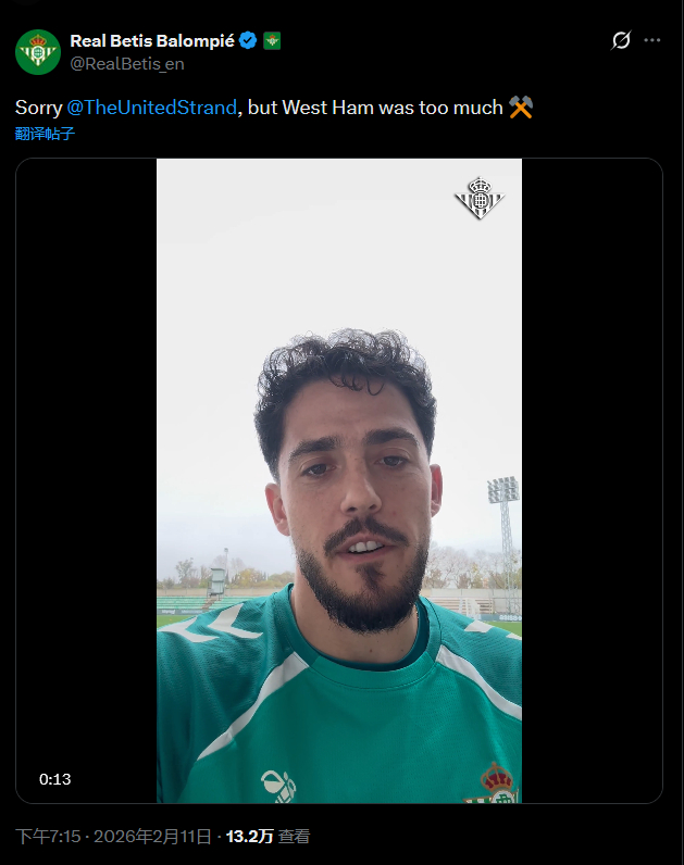 【接上】西甲皇家贝蒂斯也接上曼联的流量直接圈了蓄发哥账号,抱歉,但是西汉姆联太强