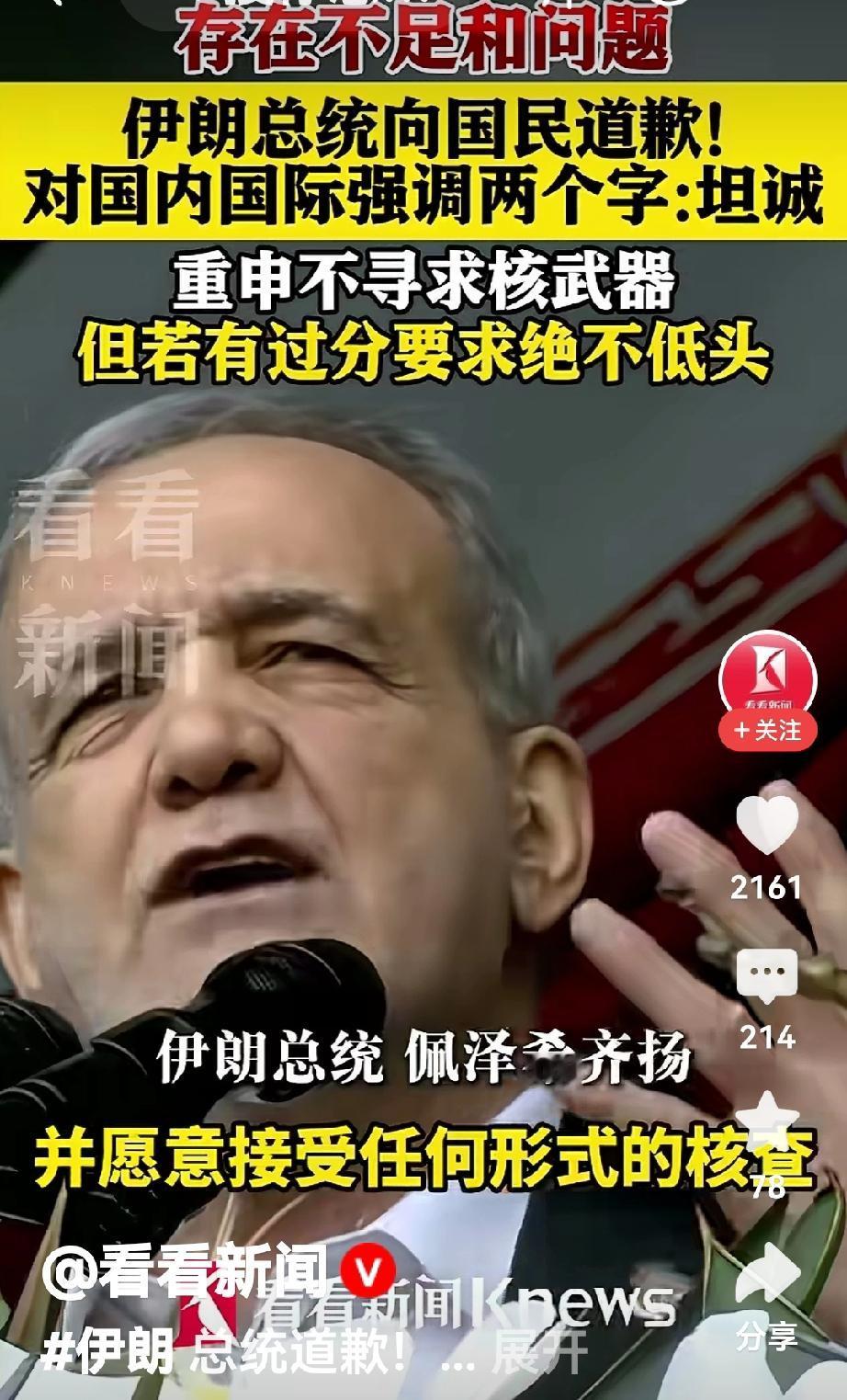 伊总统佩泽希齐扬说“愿意接受任何形式的核查”,总觉得这句话怪怪的,听起来很不舒服