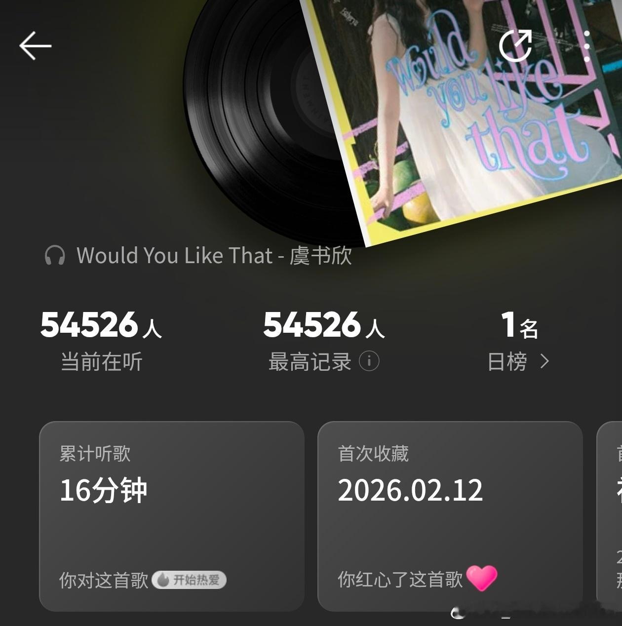 好吓人吧大半夜的5.4w人正在听虞书欣的新歌就这个虞书欣人气🔥🔥🔥