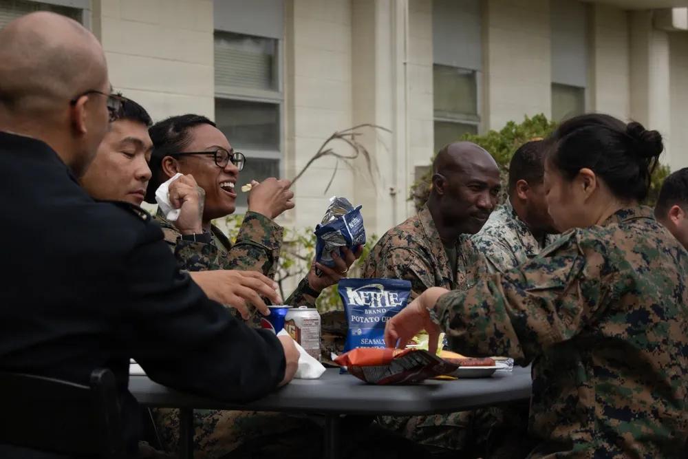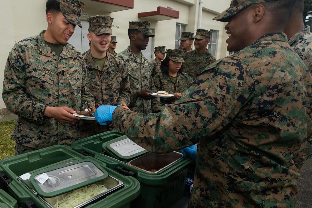 2026年2月5日,驻日美军第三海军陆战队后勤大队的海军陆战队员参加日本冲绳金泽营的烧烤聚会。