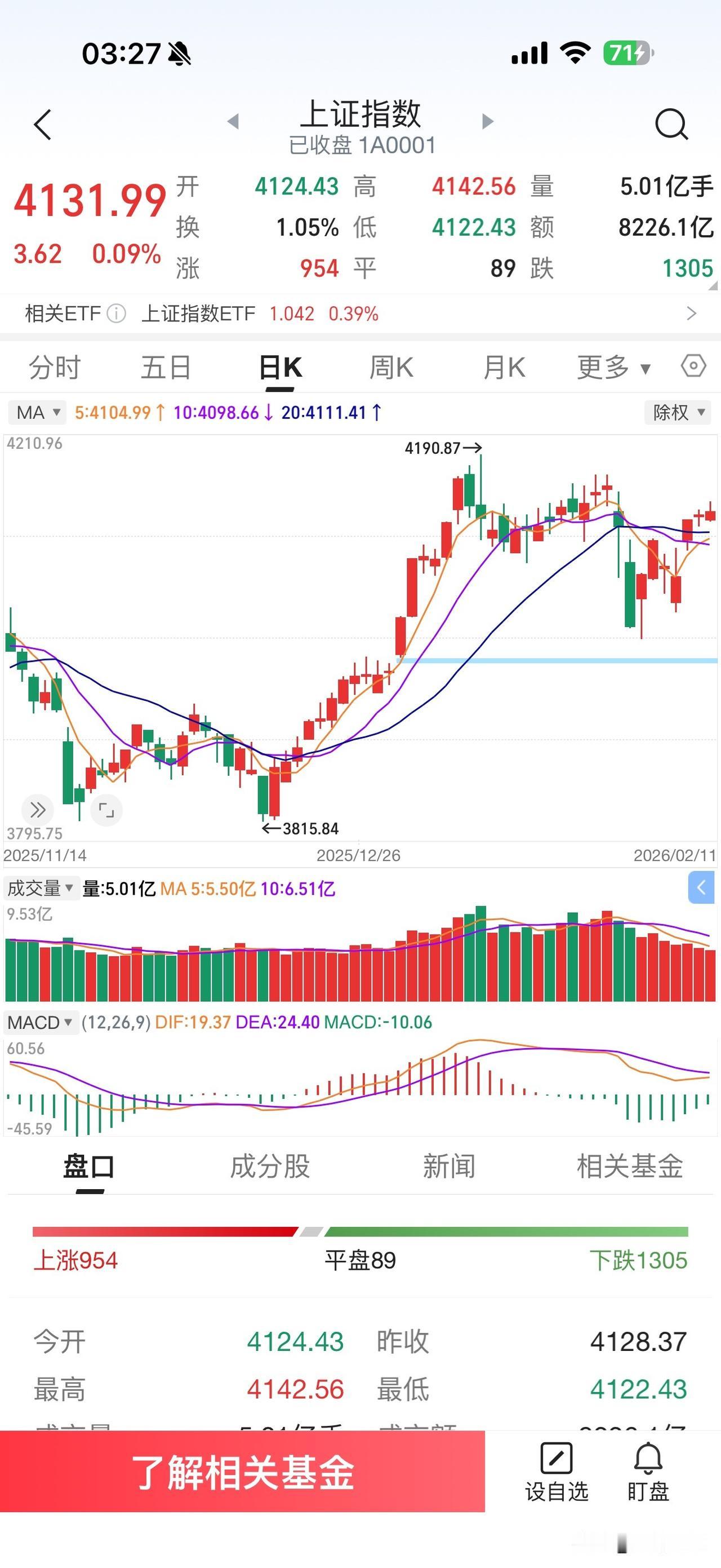 昨天A股市场走出了震荡整理的行情,成交量进一步萎缩,观望气氛浓厚主力节前剩两个交易日了,后面还会继续震荡整理,市场热点转换快基本无红包可言,投资者要保持好心态准备过春节了,节后努力再战吧。原创。