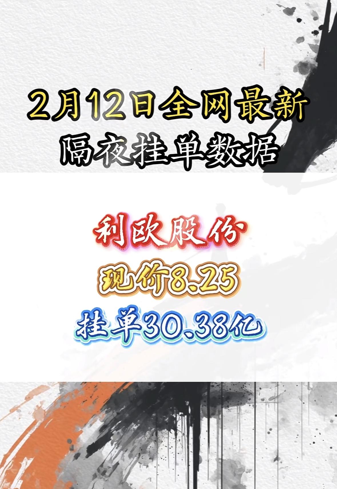 2月12日全网最新隔夜挂单数据揭晓! 巨力素具隔夜挂单数据曝光,市场热度飙升,资金关注度显著提升,行情走势引期待。