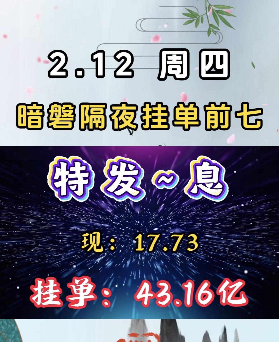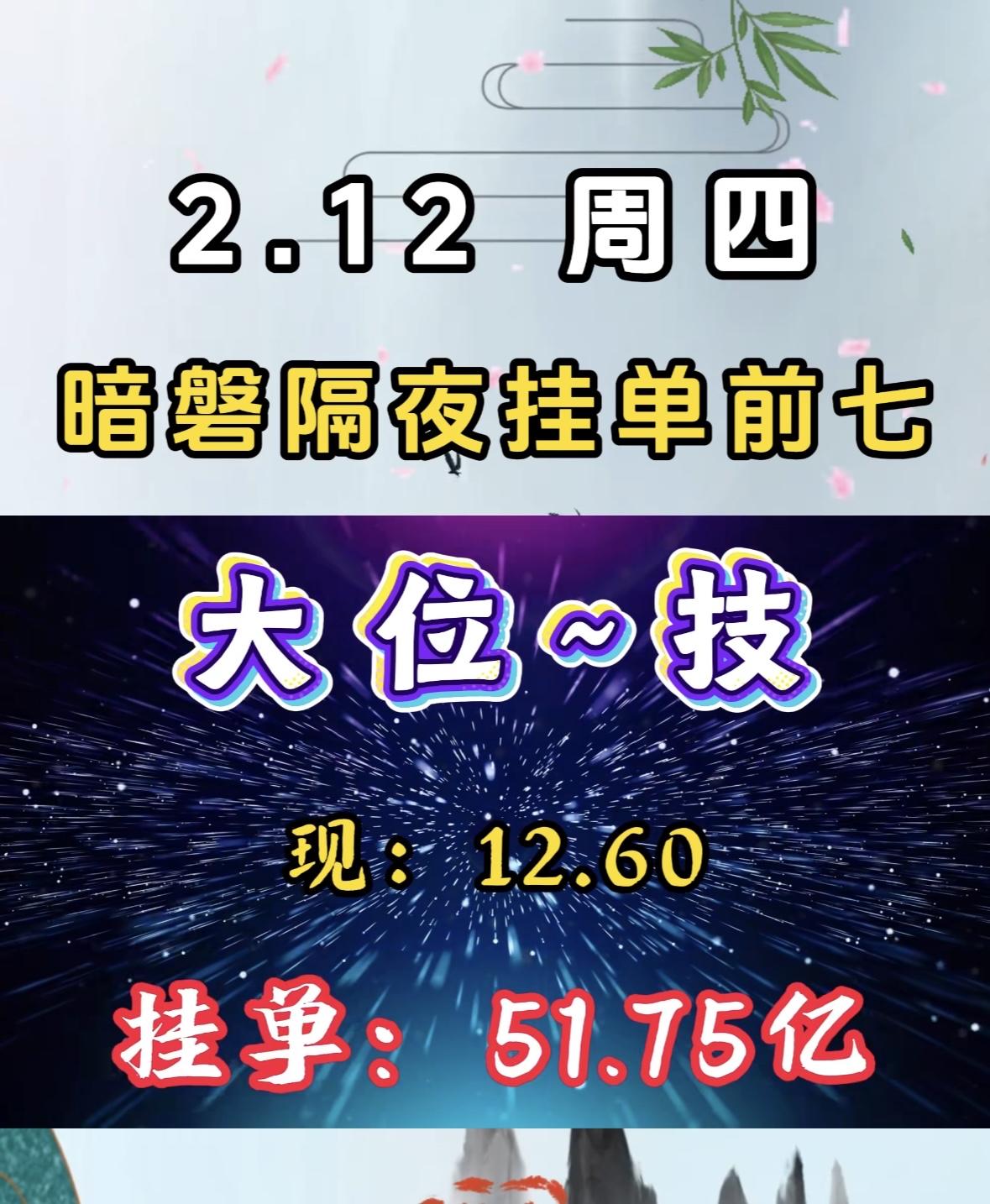 2.12周四暗盘隔夜挂单前七,华尔泰现价16.65,挂单18.47亿 游戏股掌趣暗盘挂单量惊人,资金抢筹迹象明显,市场关注度飙升。