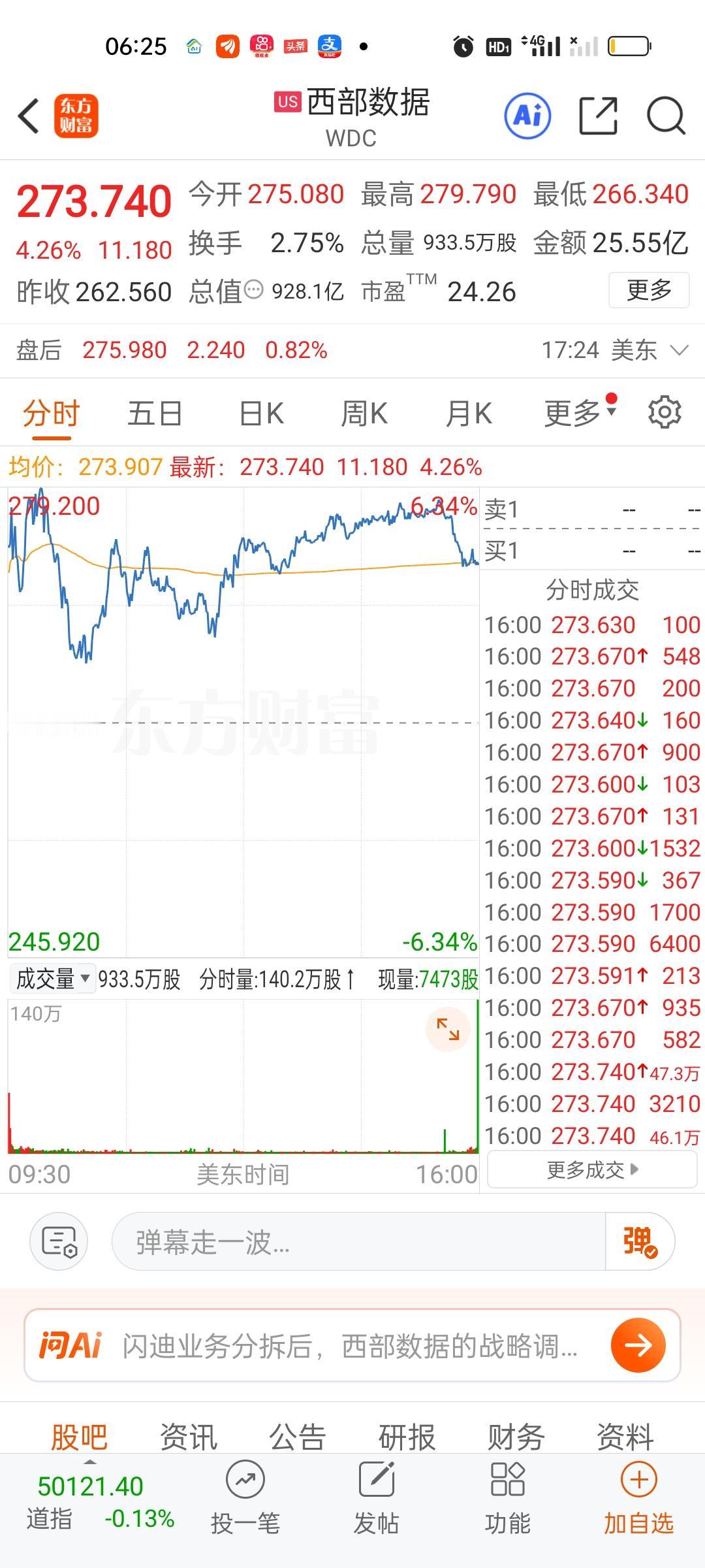 美股收盘涨得最好的还是存储芯片板块。闪迪大涨10.65%,美光大涨9.94%,西部数据涨4.26%,道指没能再创新高。两大指数收盘都是小跌的状态。