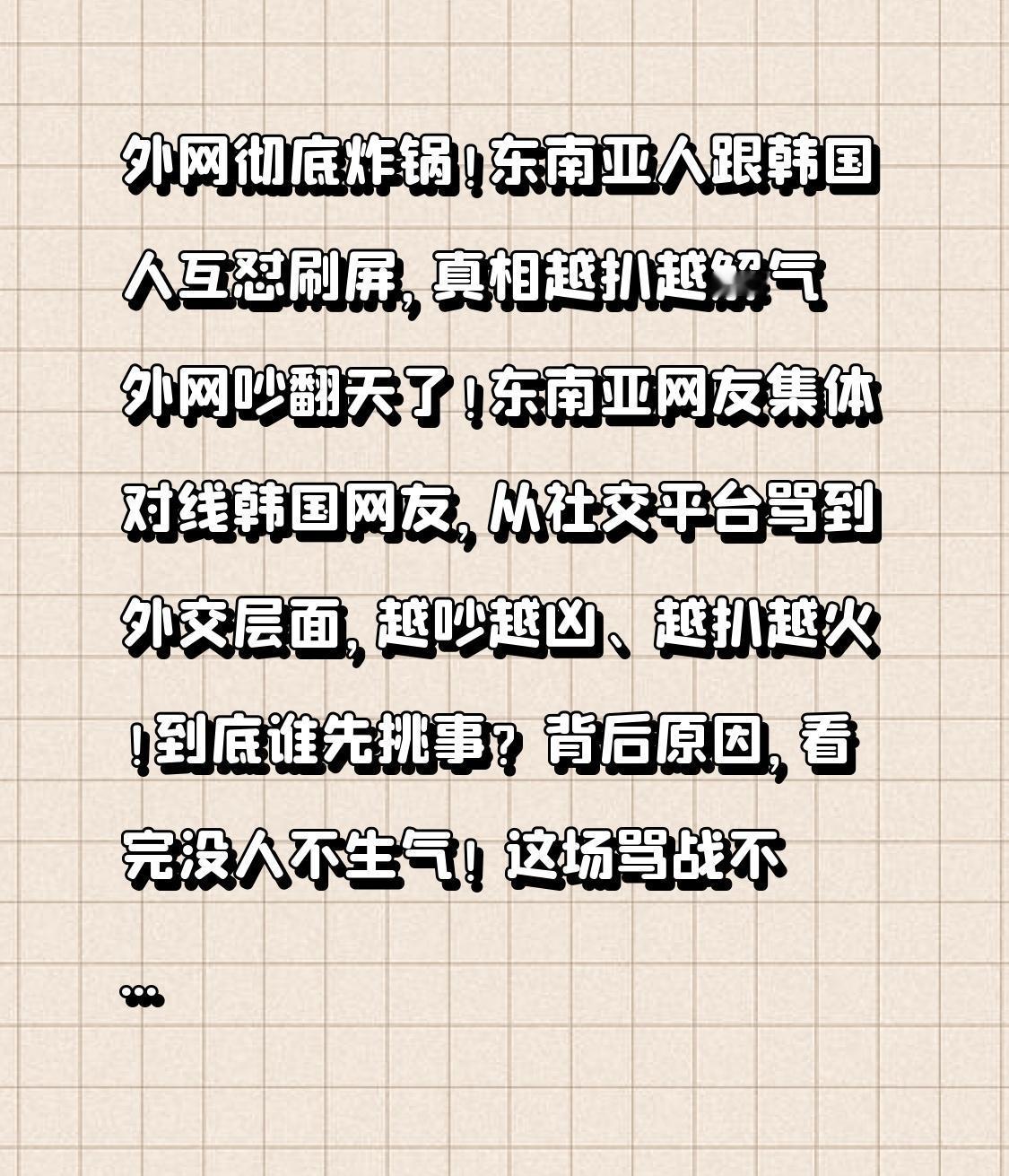 外网彻底炸锅!东南亚人跟韩国人互怼刷屏,真相越扒越解气 外网吵翻天了!东南