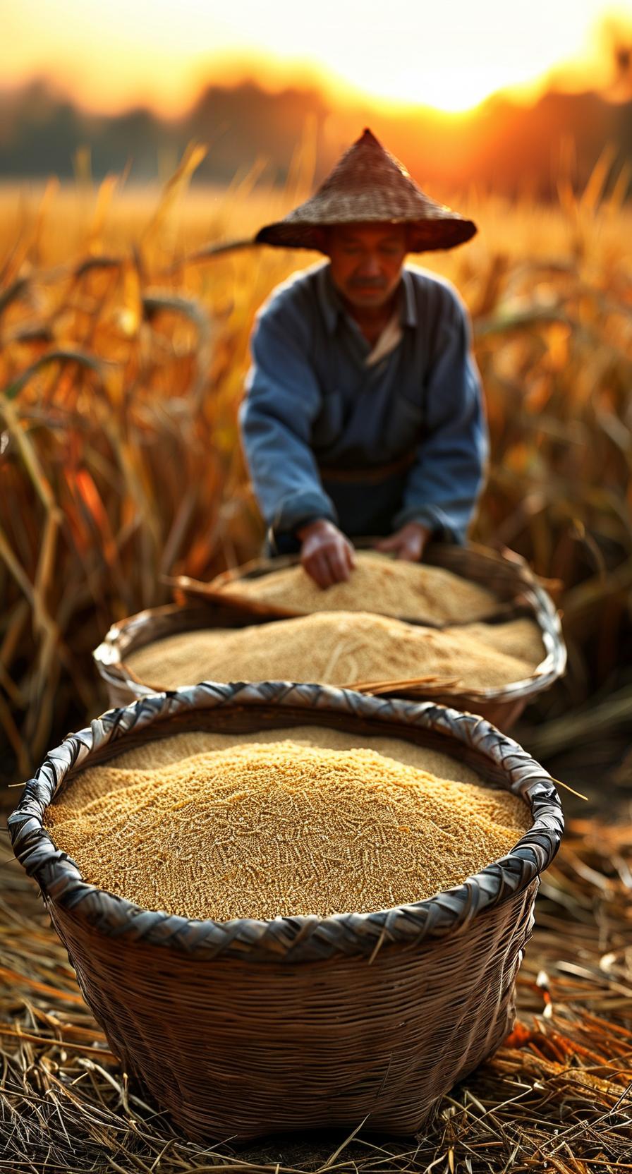 赏析:这幅对联的下联“秋收万担粮”与上联“春播千亩稻”相呼应,体现了农耕的完整周期。从春播到秋收,不仅时间上衔接自然,而且“千亩”与“万担”在数量上形成巧妙对比,展现了丰收的喜悦和劳动的成果。
