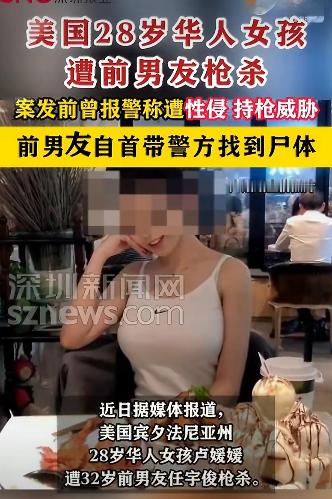 在美国宾夕法尼亚州,28岁的华人女孩卢媛媛遭遇了一场令人痛心的悲剧,她被前男友任宇俊残忍枪杀,生命永远定格在了最美的年纪。而这场悲剧发生前,卢媛媛其实已经感受到了危险,还曾试图用报警的方式保护自己,只是没想到危险来得如此之快,报警后短短数小时,她就失去了宝贵的生命。 卢媛媛和任宇俊交往了约一年,这段感情对她而言并非甜蜜,而是充满了虐待和恐惧,她一直默默承受着这份痛苦,不愿给身边人增添负担,直到后来才鼓起勇气向表姐倾诉,还在表姐的劝说下决定结束这段关系,寻求警方的帮助。她曾向警方表示,自己十分害怕任宇俊,因为对方总是随身携带枪支,还坦言自己遭到了对方的跟踪骚扰,报警当天甚至被性侵。为了彻底摆脱这段糟糕的关系,她收拾好了行李,还拉黑了任宇俊的所有联系方式,可这些举动,却彻底激怒了对方。 任宇俊并没有因为卢媛媛的报警和疏远就此收手,反而对她展开了疯狂的尾随。监控画面清晰拍下了他驾车跟在卢媛媛车后的画面,从清晨开始,他就一路追踪,最后找到机会,向卢媛媛痛下杀手,卢媛媛在自己的车内头部中枪,当场身亡。案发后不久,任宇俊就带着律师前往警局自首,面对警方的调查,他却轻描淡写地辩解,称卢媛媛说了伤人的话,还带走了两人一起养的猫狗,自己只是想掏出枪吓唬对方,没想到枪走火了才酿成悲剧。 这样的说法显然无法让人信服,当地检察官也表示,调查中发现了任宇俊一系列令人不寒而栗的行为,警方随后以涉嫌谋杀罪将其逮捕,还对他提起了刑事杀人罪、持有犯罪工具罪和跟踪罪的起诉,任宇俊在提审后也被拒绝保释。 卢媛媛的离开,让亲友和邻居都无比悲痛。在大家眼中,她是个热情善良、开朗活泼的女孩,待人亲切,总喜欢主动和身边人打招呼,给身边的人带来了很多快乐。她早年跟随父亲来到美国生活,出事前父亲刚回国探亲,让她独自在美国,谁也没想到会发生这样的意外。她的家人在筹款网站发起了活动,表姐更是痛心表示,卢媛媛鼓起勇气报警寻求保护,却在短短12小时内失去生命,独自承受了生命最后的时刻。如今人们也自发在她家门口献花,悼念这个永远停留在28岁的美好女孩。【28岁华人女孩遭前男友枪杀 】