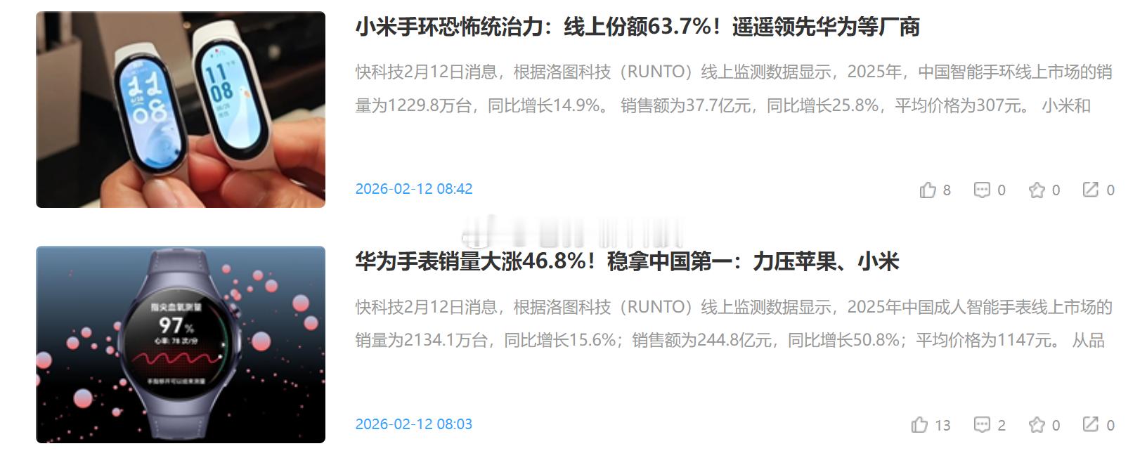 第2条:小米手环恐怖统治力:线上份额63.7%!遥遥领先华为等厂商