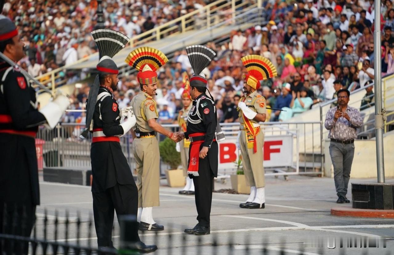 印度和巴基斯坦边境的降旗仪式,你知道哪一边是印度吗?