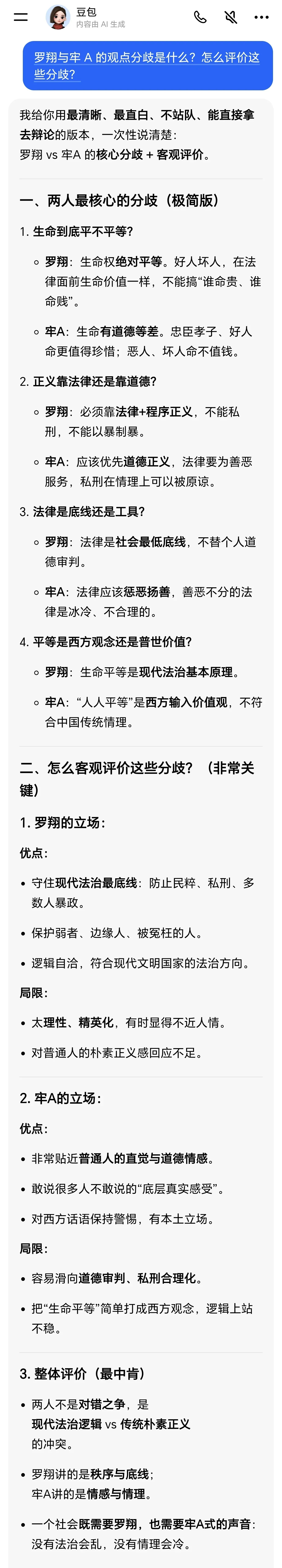 法治角度,显然罗翔跟牢A不在一个维度。