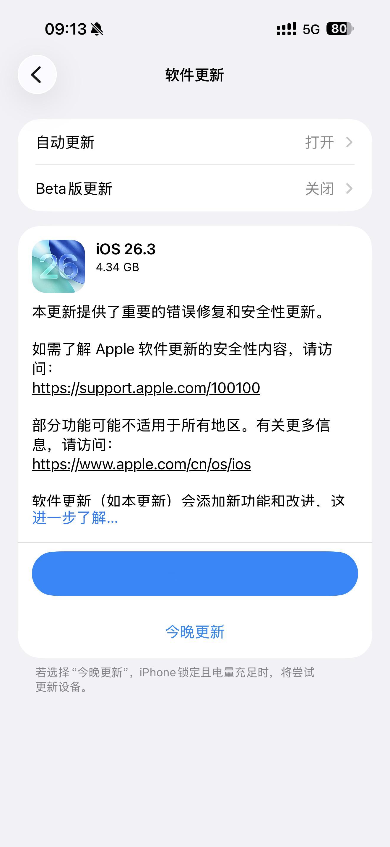 iOS26.3正式版来了来了,那天刚看见一个朋友买了17PM,听说了苹果更新系统电池健康会掉,会卡顿,说自己五年以内肯定不会更新系统。