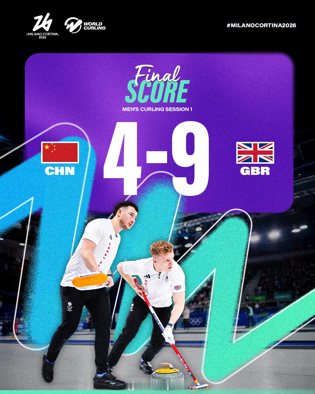 米兰冬奥会男子冰壶循环赛,中国队4比9英国队,无缘开门红