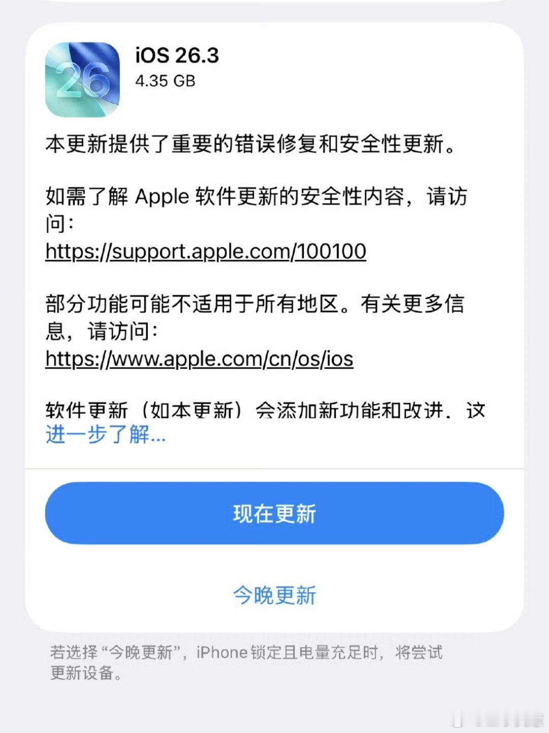 iOS26.3正式版来了iPhone我一直卡的ios16不让升越升级越卡这点我还是懂的哈哈哈哈哈没想到现在居然ios26了