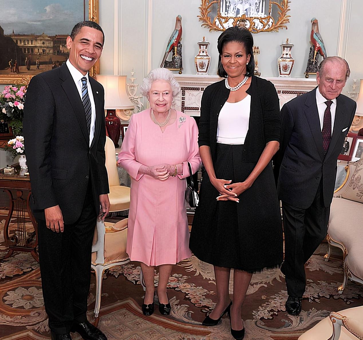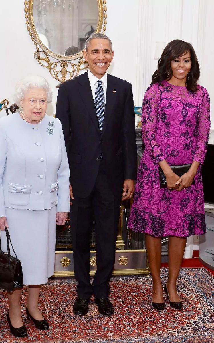 米歇尔这么高吗?她将伊丽莎白女王衬得好矮啊,就连菲利普亲王都没有她高。这样看来,奥巴马还挺高的,他和米歇尔差不多一样高。
