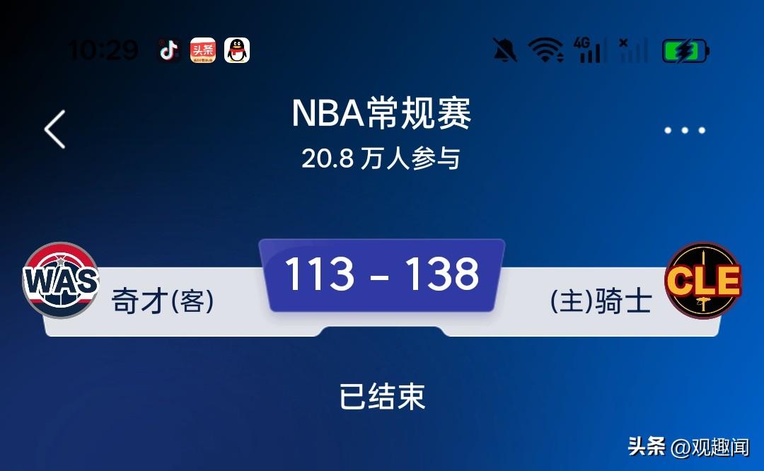骑士主场大胜奇才收获五连胜! 哈登骑士主场首秀:13分11助攻 骑士坐镇主场以1