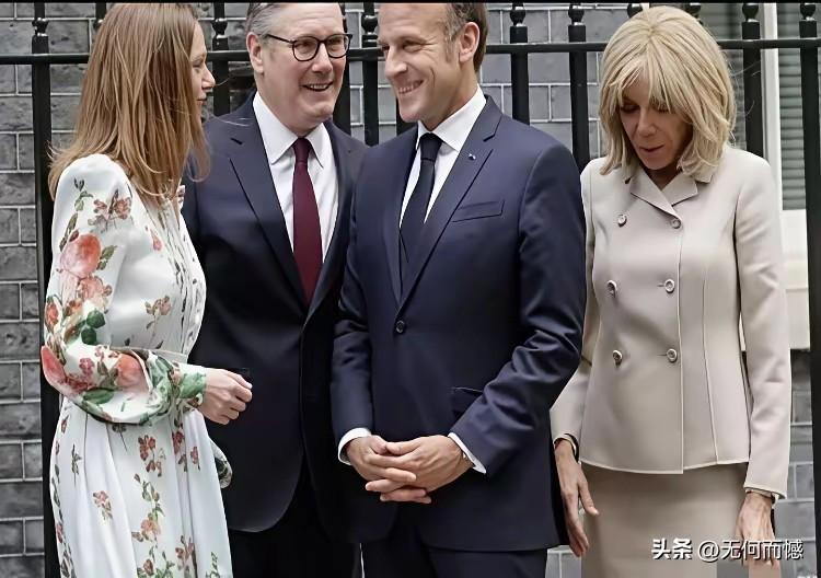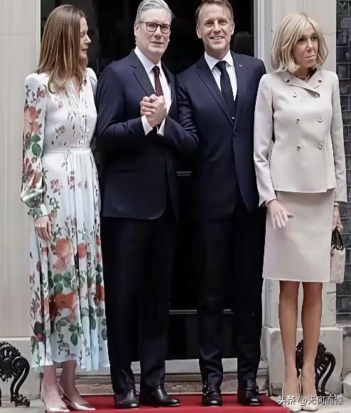 马克龙和斯塔默见面时,非常的亲切,非常的热情,斯塔默的妻子穿的比较时尚,而且还特别的大方得体,给人带来的感觉不一样,而马克龙的妻子穿的衣服尽管也很板正,但是感觉有些拘谨,也许和她的年龄有关系,岁数大了,也许不适合穿这样的衣服!