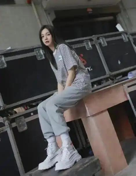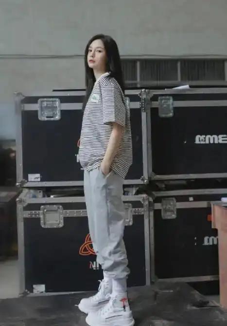 32 岁沈梦辰少女感爆棚!裤脚塞进袜子里,意外拉长比例超显腿长
