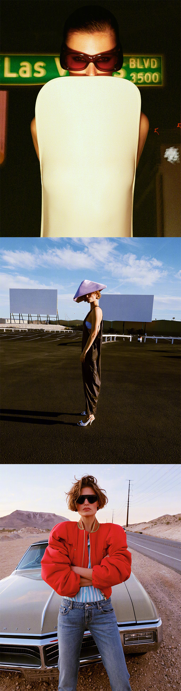 T Magazine Spring 2026 春季刊封面人物,超模Bibi Breslin 登封,分别由Carlijn Jacobs & Anthony Seklaoui 两位摄影师拍摄,黑夜白昼交替,喧闹热烈的时装片。🌆🚗 封面大赏风格大赏