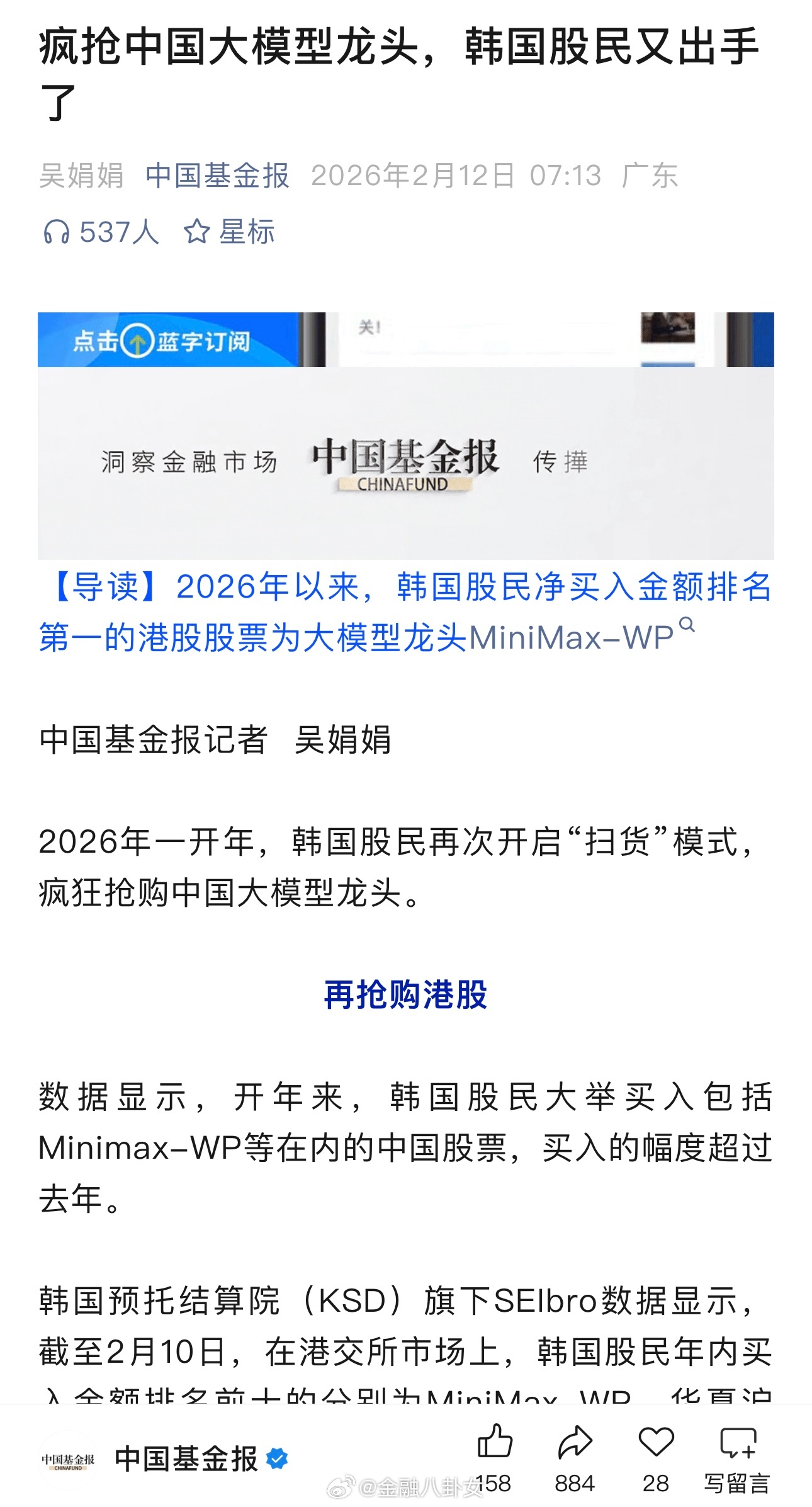 韩国股民疯抢中国大模型龙头2026年一开年,韩国股民再次开启“扫货”模式,疯狂抢购中国大模型龙头