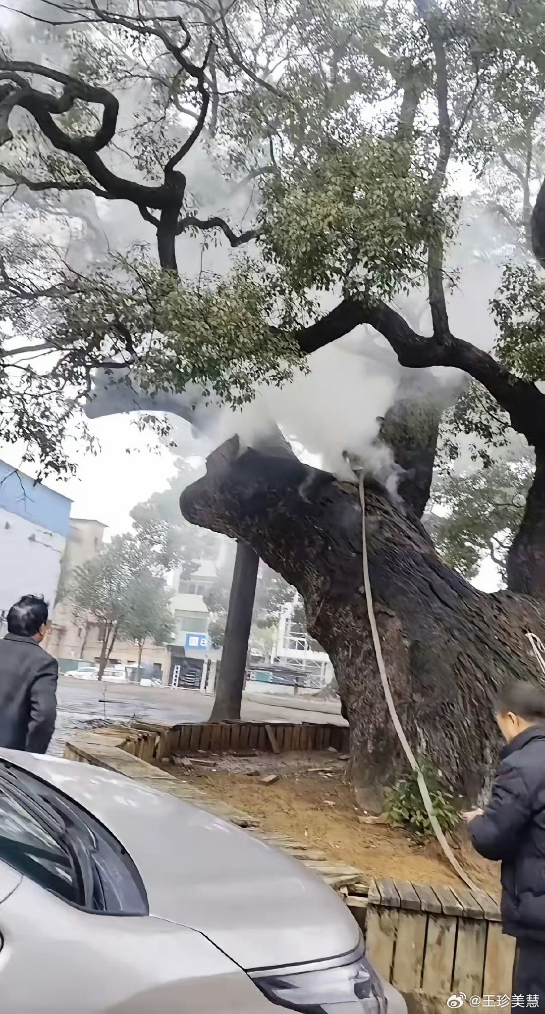 两名小孩扔爆竹致1200年古树起火现在的爹妈是不是都不管孩子的前两天是把萨摩耶给活活烧死了现在是把1200年的古树也给点着了不想管不会管就别生出来嚯嚯别人啊真的是服了
