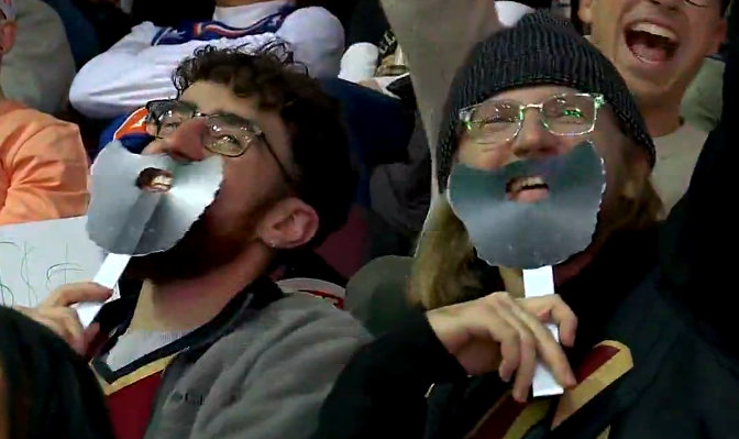 为了庆祝哈登在骑士主场的首秀,球迷们领到了他们可爱的大胡子!