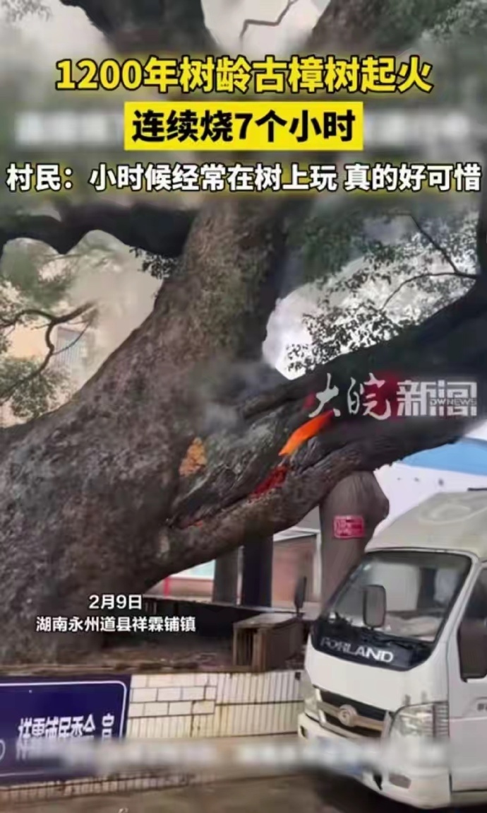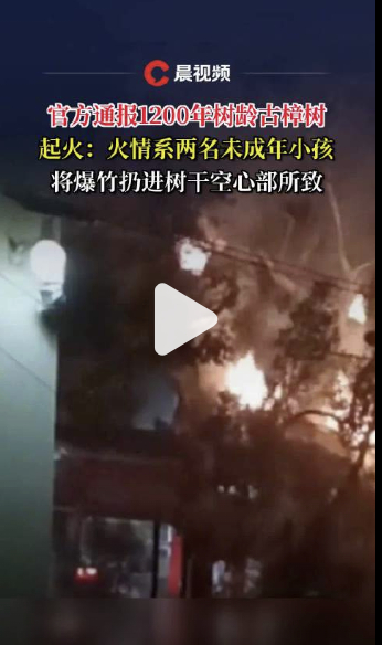 古樟树被小孩扔爆竹烧了,折腾7小时才扑灭!家长的教育太重要了,这多危险啊两名小孩扔爆竹致1200年古树起火