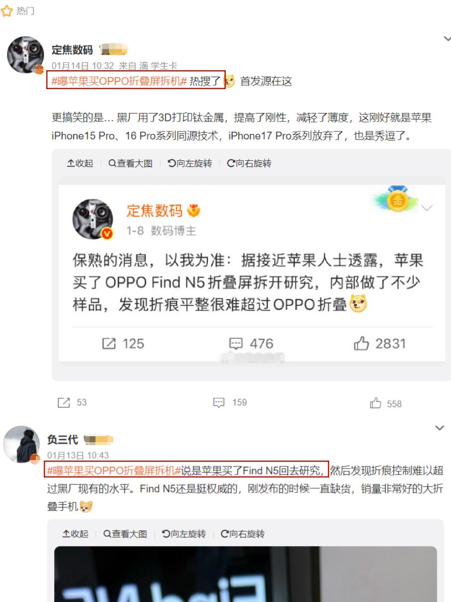 苹果折叠屏终于来了,但和你想的可能不一样? 苹果的折叠屏iPhone Fold总算定在今年发布了。库克为什么选现在入场?说白了,核心原因就一个:他们觉得折痕问题能解决了。 - 为了攻克这个难题,苹果调整了屏幕触控方案,还用上了液态金属铰链。单单是配置曝光也没啥意思,但更有意思的是后续!据多个数码博主爆料,苹果在研发时曾拆解研究OPPO Find N5,并最终决定采纳其核心铰链方案,二者供应链高度重复。 - 这意味着,苹果的首款折叠屏在核心体验上,可能和国产旗舰有着千丝万缕的联系。而被“借鉴”的OPPO,下一代Find N6已经确定在年后发布(传闻是3月),比苹果早至少半年。而且据传,虽说苹果OPPO用的是同款供应链,但Find N6的技术优先级比苹果更高。有消息透露,黑绷带屏幕这类承托更平整的内屏技术,加上同样也是液态金属铰链的设计,都会出现在Find N6上,唯一目的就是把折痕做到最浅,实现视觉无折痕效果! - 所以,如果你在期待一款真正成熟的“下一代折叠屏”,或许不必苦等苹果。年后就能亮相、且很可能在折痕控制和综合体验上更有看点的OPPO Find N6,说不定更值得关注。 - OPPO趁现在苹果折叠屏 OPPOFindN6 折叠屏手机 折叠屏折痕 数码爱好者 畅聊数码新品 科技数码秀 iPhoneFold
