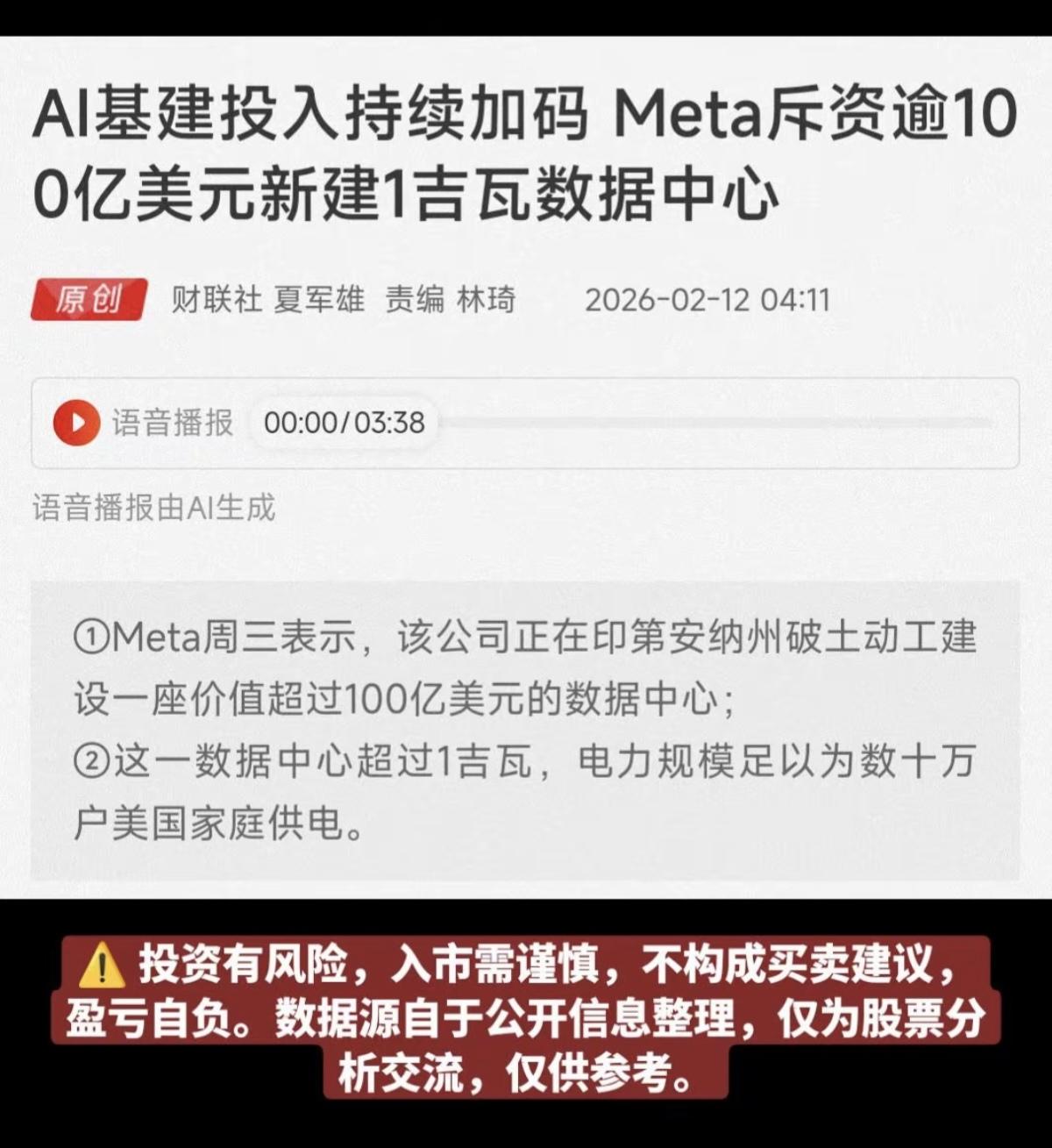 AI基建投入持续加码!电力行业升级! Meta斥巨资100亿美元,新建数据中心! 特高压,变压器,电源设备,发电机组,液冷数据中心板块获得资金关注。 相关核心龙头股: