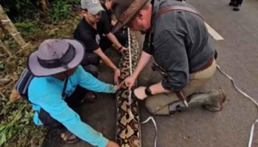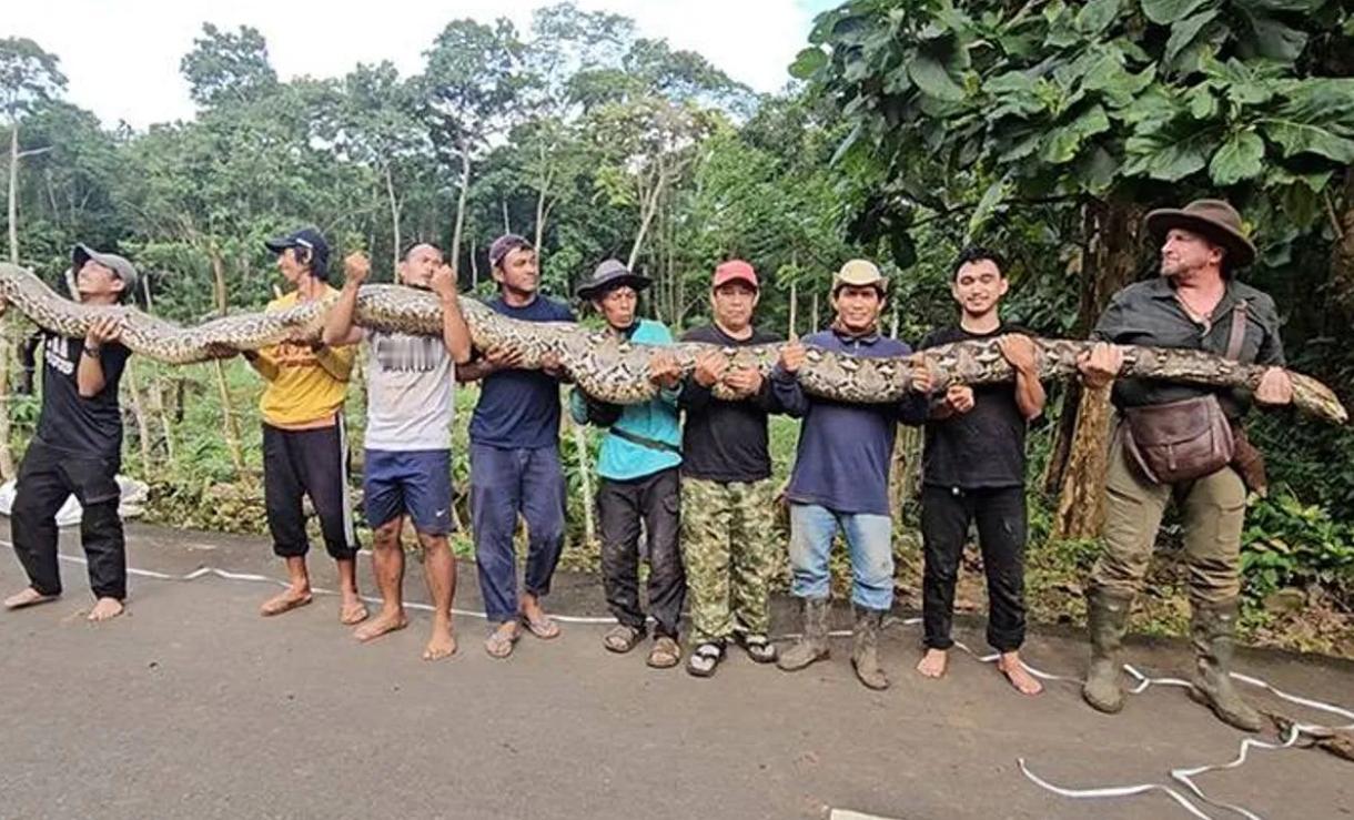 世界最大的野生蛇类已长到足球门大小 2025年底在印度尼西亚火山喷发的苏拉威西岛捕获的一条雌性巨蟒(网纹蟒)被认为是世界上最长的蛇。今年2月,它被列入吉尼斯世界纪录,以其长达7.22米的惊人长度,被载入了吉尼斯世界纪录,成为迄今为止发现的最长的野生蛇。 据报道,在1月18日的官方测量中,这条蛇的长度被记录为7.22米。专家说,在麻醉下,当它的身体完全放松时,它可以伸展大约10%,达到大约7.9米。然而,由于可能对动物健康造成危害,因此没有使用这种方法。 这条巨蟒目前由当地野生动物保护专家照料。来自加里曼丹的野生动物导游、持照捕蛇人迪亚兹·努格拉哈,以及在巴厘岛生活了20年的研究员兼自然摄影师拉在听到关于蟒蛇的传言后,他们共同前往苏拉威西岛,进行评估和记录。