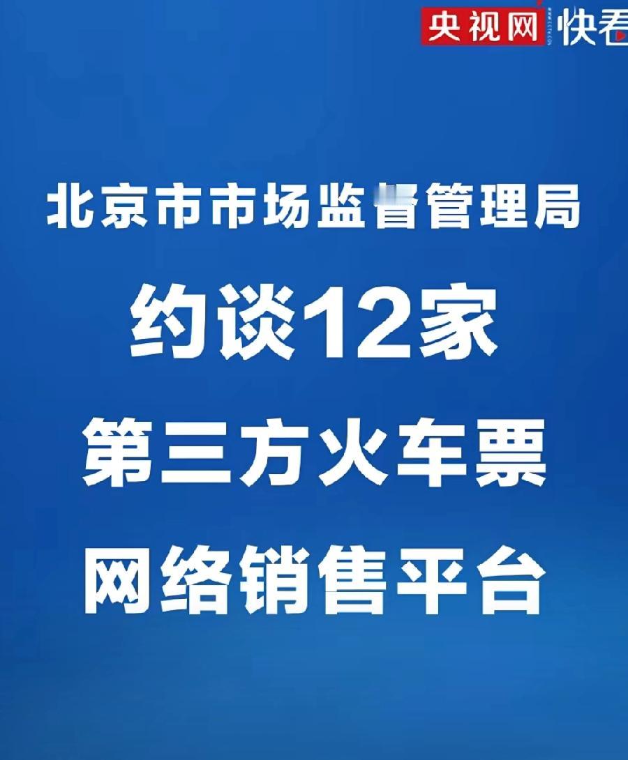 北京市场局约谈12家第三方火车票平台,其实更应该约谈12306!买候补票,说了一大堆,12306买不到,加了钱,第三方平台能买到,这是事实!别管平台用了什么招,这公平吗,12306候补还有什么用?12306是购票信息源总平台,技术监管没有漏洞?
