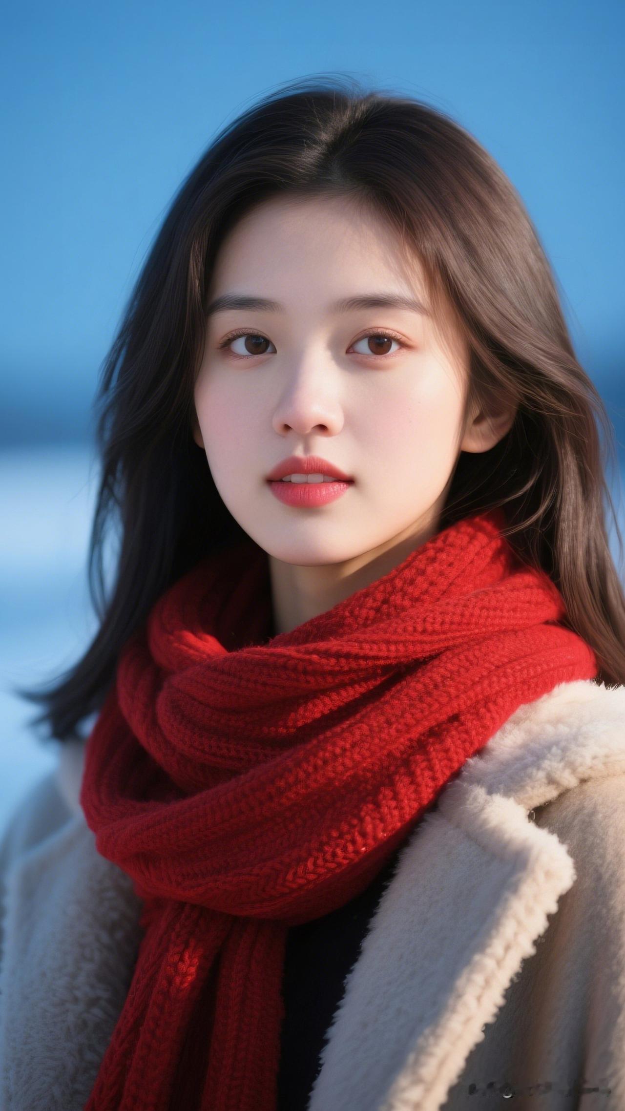 冬日暖阳下的温柔少女,红色围巾与白色大衣相得益彰,美得令人心动。什么是真正的女性之美?
