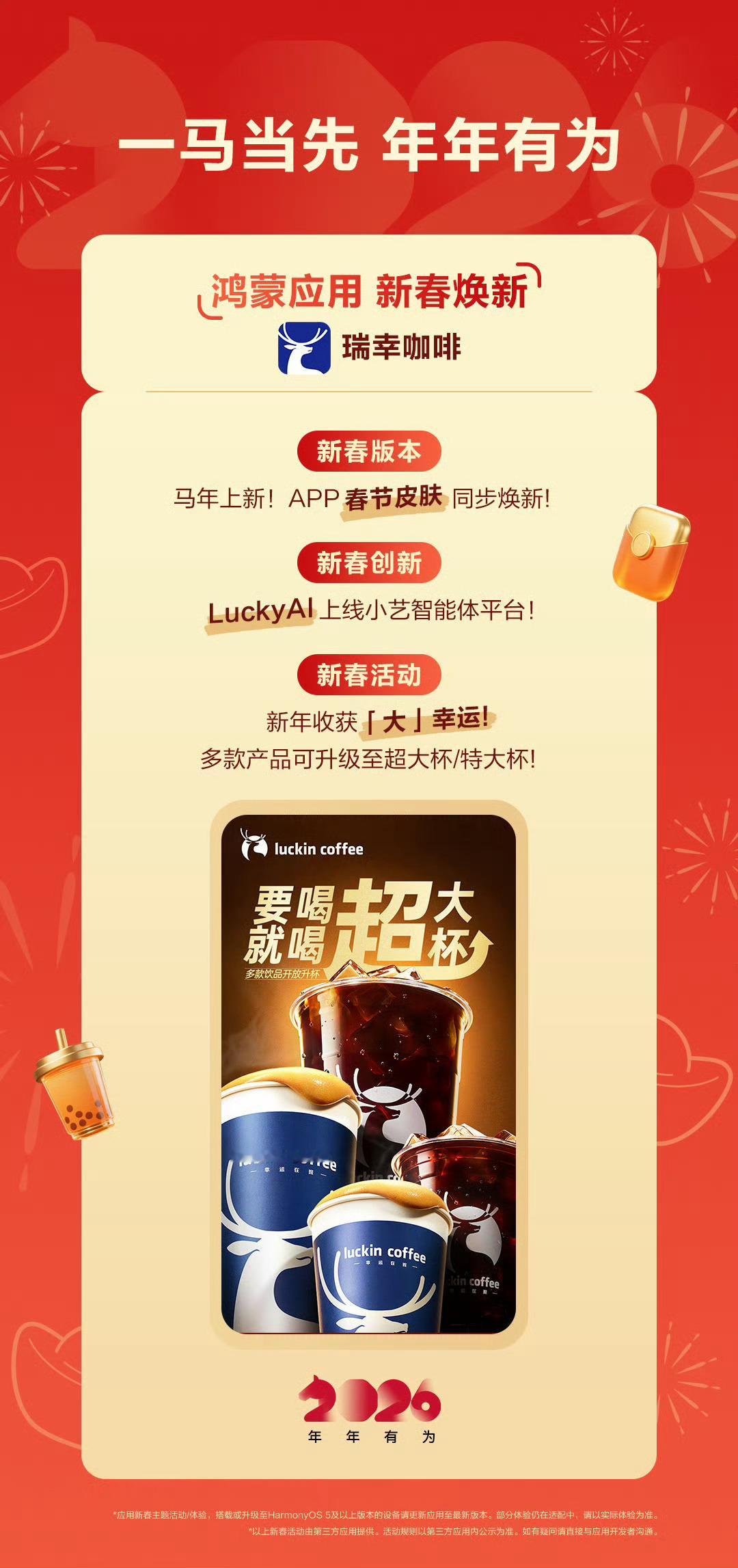像大家常用的应用APP,基本升级到了目前的最完美状态了,涵盖抖音、瑞幸、微博、微信、滴滴等等等。特别是滴滴上线的「宠物出行」功能,既可领宠物出行打车券,还有免费的宠物出行险。喜欢喝咖啡的朋友,也可以瞅瞅瑞幸新年「大」幸运活动,多款产品可升级至超大杯或特大杯。