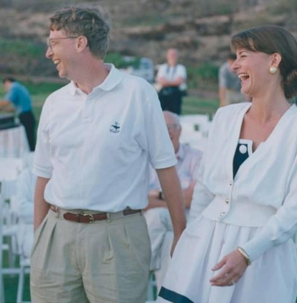 比尔盖茨一家人幸福瞬间,比尔盖茨女儿坐肩膀,笑得合不拢嘴。