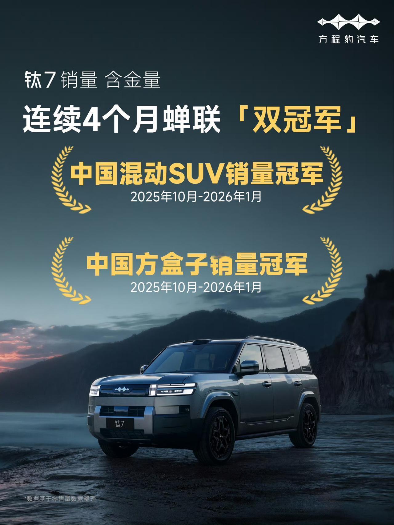方程豹钛7的“含钛量”还在上升!上个月的销量拿到了中国混动全品类销量第一,同时也是中国混动SUV销量的第一!自从钛7上市以后,已经连续4个月蝉联了中国混动SUV和中国方盒子的双销量冠军了!方程豹钛7的“含钛量”还在上升!