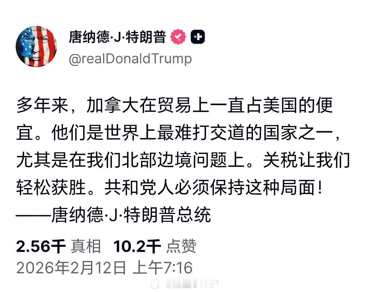 特朗普又吐槽加拿大声称在贸易上加拿大一直占美国便宜