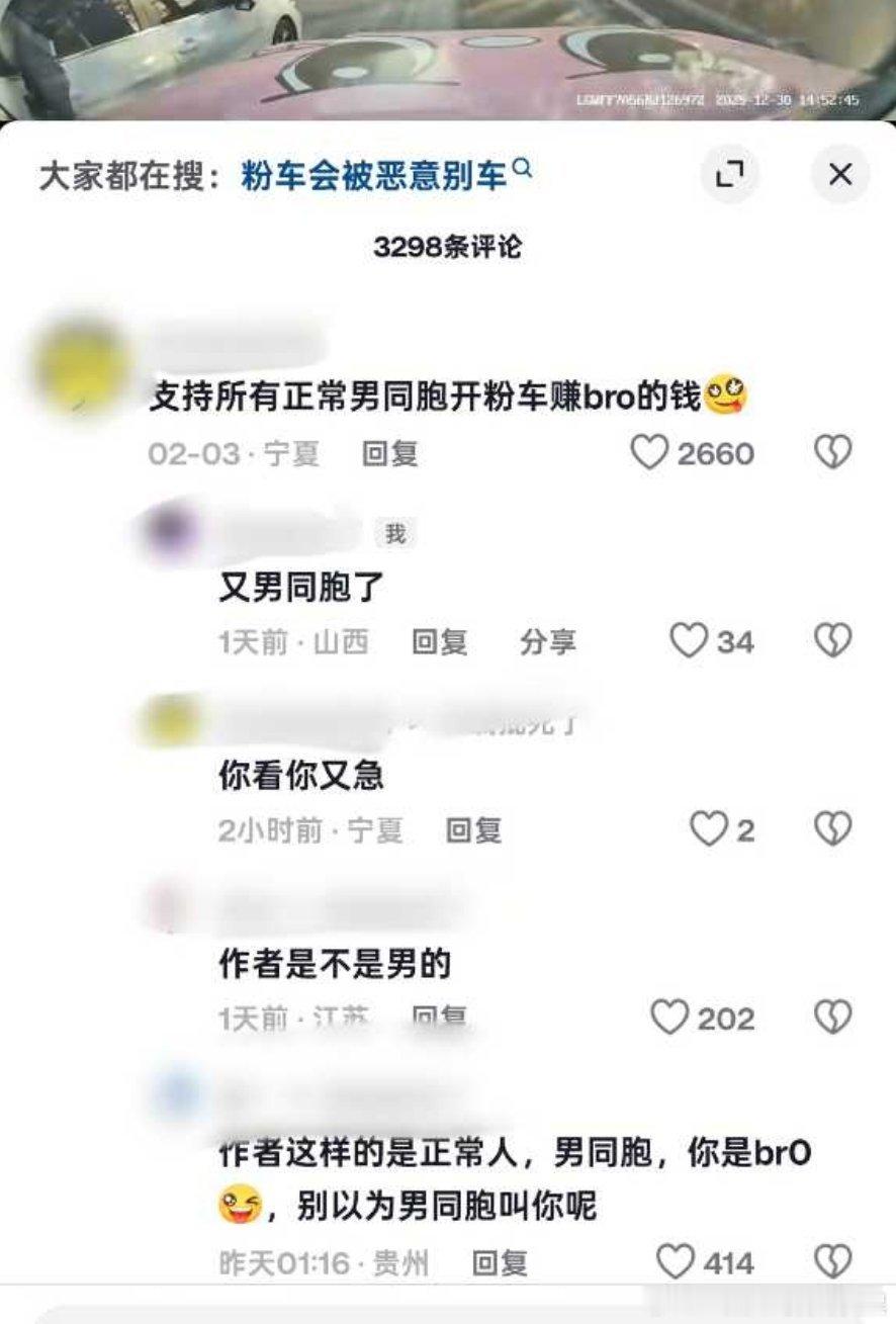 不知道能不能投,其实我的意思是粉色车衣被别车是女性被歧视的表现,怎么又变成了正常男性怎么怎么样,然后又用这种事给男的赋魅,最后又说哇你三观好正!好久没见三观这么正的男的了,支持你去这样赚钱。总感觉怪怪的