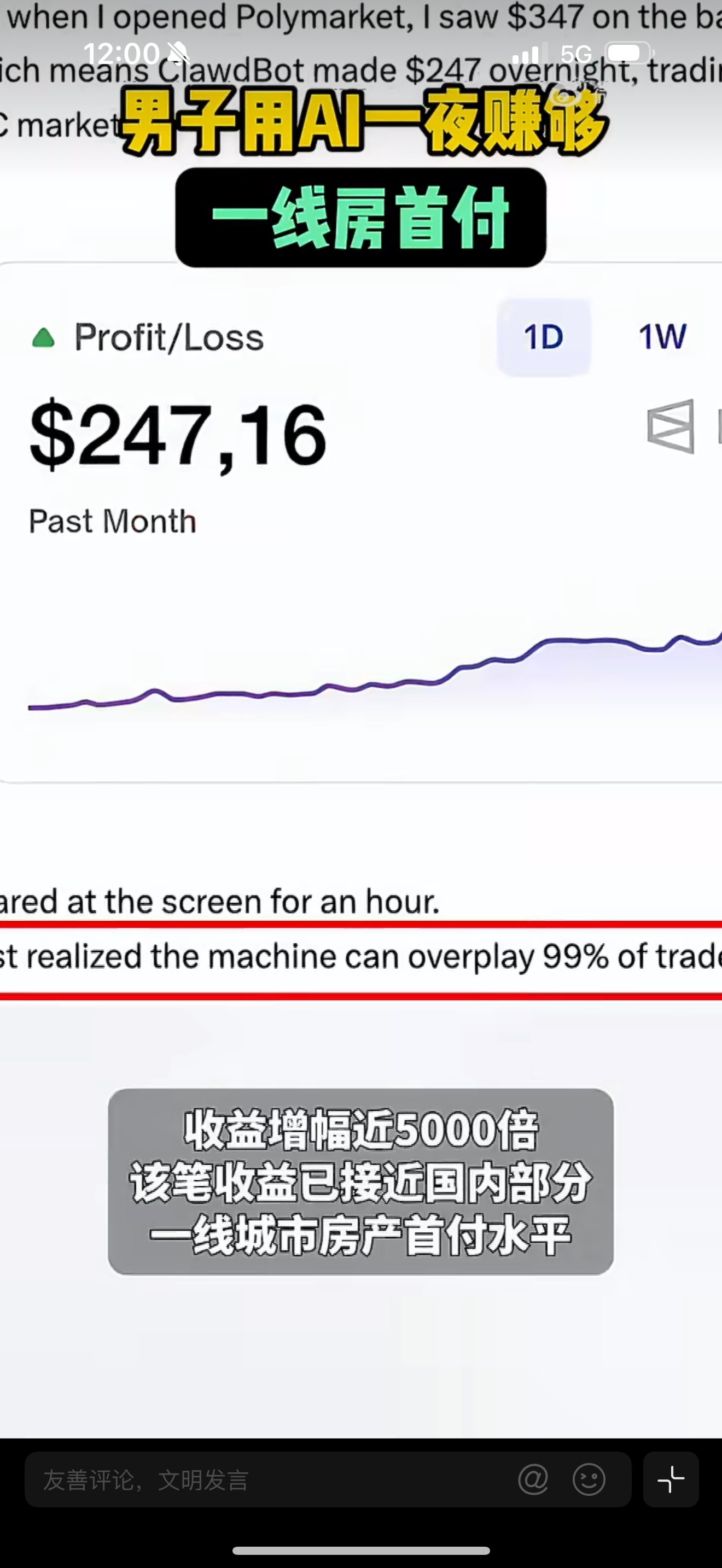【男子用AI一夜赚够一线房首付】50美金起家靠AI一夜翻了5000倍 这波操作彻底印证!AI在国外已经打破炒股信息垄断、抹平信息不对称,这就是最直观的结果!
