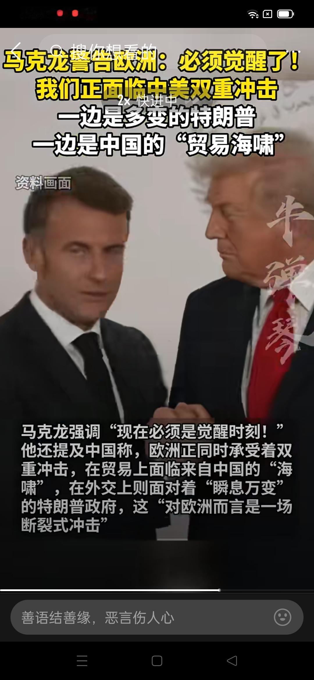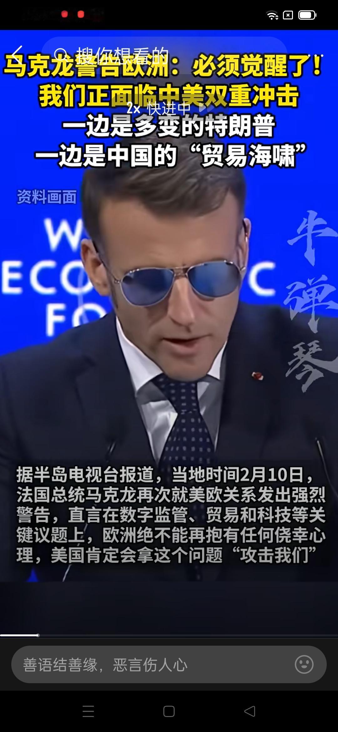 欧洲一不小心就钻进了夹缝中,还能活吗?马克龙算是清醒一回。 欧洲没法活了?马克龙周二接受采访时警告欧洲:我们在贸易前线遭遇中国的商业海啸,同时面临美国方面瞬息万变的不稳定。这两场危机对欧洲人构成了深刻的冲击——一种断裂。面对来自美国和中国的竞争,欧盟有被“扫地出门”的风险。 马克龙警告欧洲,清醒点吧,不要天天自我陶醉了,欧洲正面临中美“双重冲击”,这话听着尖锐,其实是欧洲精英难得的清醒。不知道马克龙能喝多少白兰地? 所谓“冲击”,从来不是中美刻意针对,而是旧格局、旧秩序正在彻底洗牌:美国要的是霸道、霸权延续,不断收割欧洲;中国走的是产业升级、多元世界,凭实力重塑赛道。 欧洲真正的危机是因为自己!高傲自大、不够团结、不够自主、不敢独立决策。喊觉醒容易,真觉醒难。欧洲如果只会在大国之间摇摆,未来只会越来越被动,欧洲没有未来! 马克龙外交风波 欧盟软实力危机 欧洲安全风险 欧洲经济压力