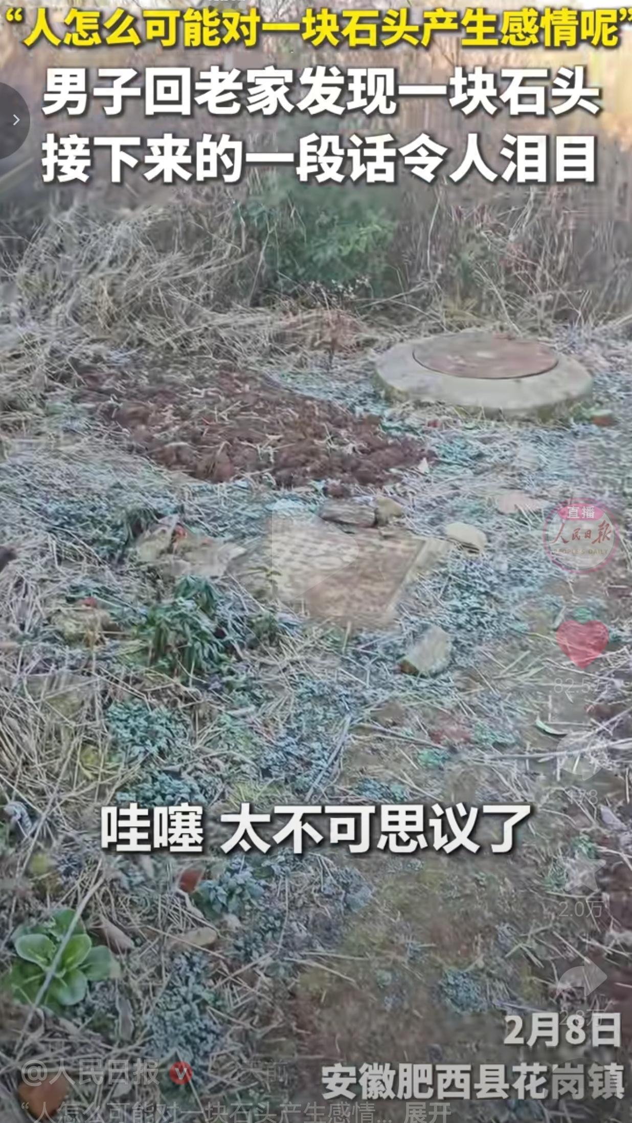 一块破石头,看哭很多人,感动了很多网友,原来我们一生都在怀念那个为我们压锅盖的人。 这就是最真的触景生情啊!看得人鼻子一酸,眼泪直接就掉下来了。 2月8日,25岁的安徽小伙,再一次回到了老家。可推开门的那一刻,心都凉了半截——家里空荡荡的,安安静静,再也没有往日的热闹,再也没有那个站在门口等他的人。 木门吱呀作响,院子里的野草都长过了脚踝,老厨房的墙裂了一道缝,烟囱上,还裹着当年的那层塑料布。 就在他低头的一瞬间,一块熟悉的圆石头,静静躺在那里。 他伸手一摸,粗糙的纹理,沉甸甸的重量,一瞬间就把他拉回了小时候,眼眶“唰”地就红了。 他对着镜头,声音都哑了,带着点自嘲:“人怎么可能对一块石头产生感情呢?” 可下一秒,他彻底破防。 他哭着说:“这是我奶奶,生前压锅盖用的压锅石。” 啥是压锅石?农村长大的孩子,一听心里就软了。 那时候家里穷,用的都是一口黑黢黢的大铁锅,锅盖又旧又笨,冬天煮米饭、蒸馒头,怕热气跑了,奶奶总会从河边捡一块顺手的石头,稳稳压在锅盖上。 锅盖一压,锅里炖着菜,冒着热气,奶奶在灶台前忙前忙后,我们在旁边等着吃。 那一块小小的石头,压住的不是锅盖,是一整个家的烟火气,是我们再也回不去的童年。 所以小伙才会说:“石头本身没有温度,是心里的人,给了它念想。” 视频一发出,评论区直接哭成一片。有的网友说:我家也有一块,是爷爷从河里捡的,现在我摆在书房,看见它,就好像爷爷还在。” 也有的网友说:“我留着奶奶的磨刀石,每次摸到它,就想起她在院子里磨菜刀的样子。” 还有的网友说:“我们怀念的哪里是石头啊,是再也回不去的家,是再也见不到、喊一声再也没人应的亲人。” 人这一辈子,真的很奇怪。小时候总盼着长大,盼着离开家,盼着往外飞。 可是,等真的长大成人了,飞远了,才发现,我们最想回去的,还是那个有灶台、有烟火、有老人在等的老房子。 那些我们曾经觉得不起眼、甚至有点破旧的东西——一块压锅石、一把旧锄头、一个老瓷碗、一根磨短的擀面杖。其实都是时光留给我们的念想。 它们不说话,却藏着最深的爱。 它们不值钱,却是我们心里最珍贵的宝贝。 人走了,家还在。家散了,念想还在。 这块小小的石头,轻轻一戳,就戳中了我们所有人心里最软的地方。 看到这,你是不是也想起了家里的某样老物件?想起了那个,再也见不到的人?