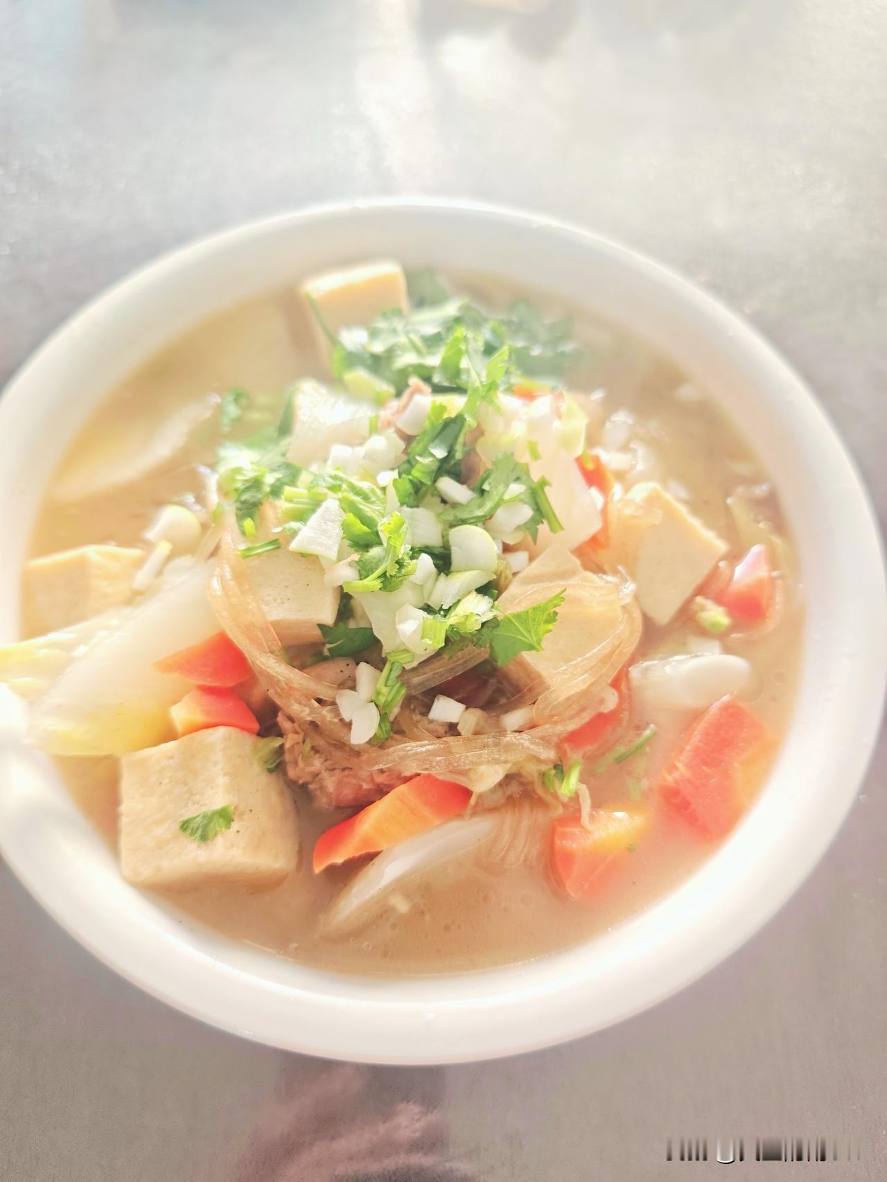今天中午在家就做了一个羊肉炖菜,一碗米饭一个炖菜,都吃的有点撑了[捂脸]。