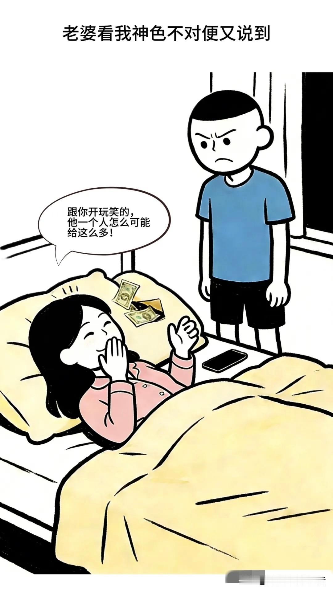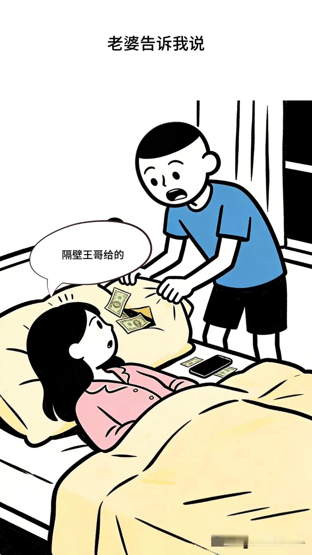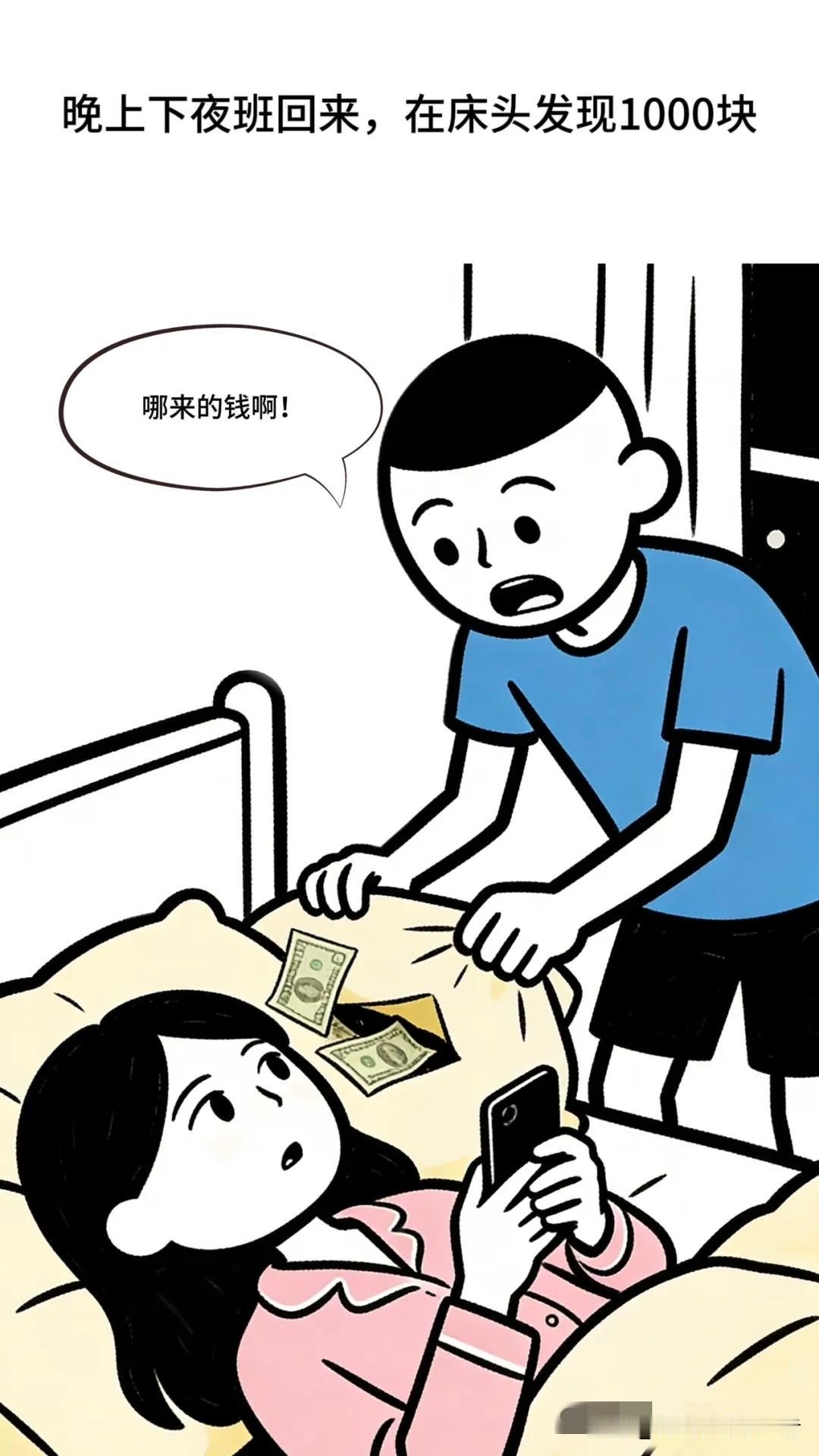逗你笑:下夜班回到家,发现床头有一千块,便质问老婆。老婆:隔壁王哥给的。看我神色不对又说到:开玩笑啦,他一个人怎么可能给这么多!