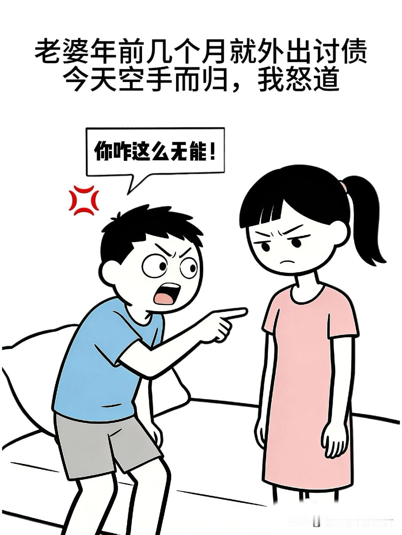 爆笑解压漫画:老婆年前几个月就外出讨债,却空手而归,老公:你真无能。老婆不服气:虽然没要到钱,但老板的孩子在我手上。老公:人呢?