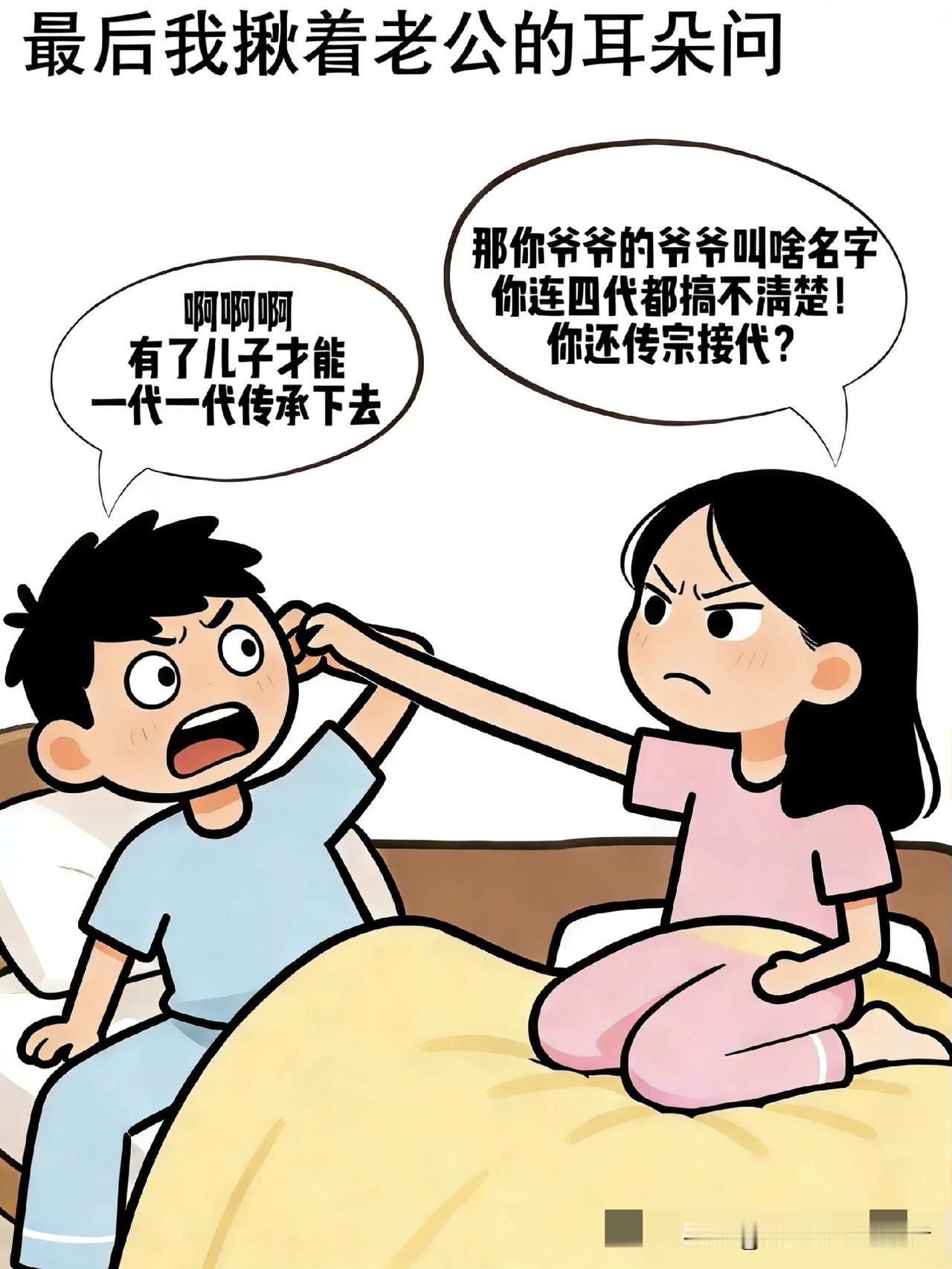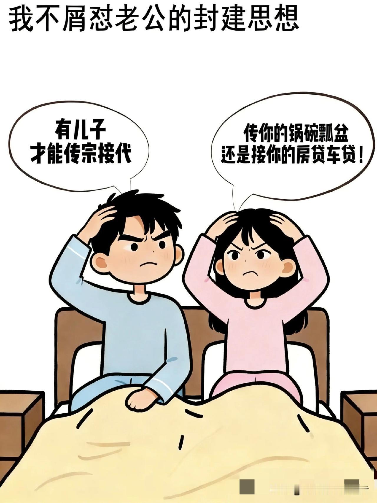 趣味漫画:老公说:你必须要给我生个儿子!我:你家有皇位要继承啊?老公:有儿子才能传宗接代!我:传你的锅碗瓢盆?还是接你的房贷车贷趣味小漫画