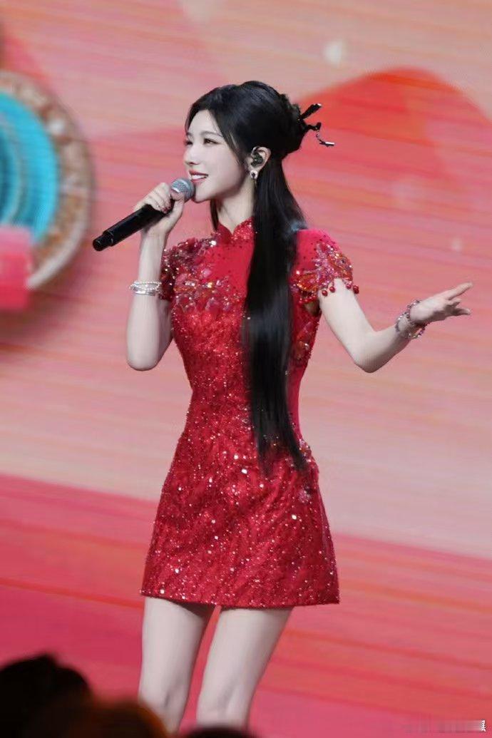 戴燕妮红色闪钻旗袍 曼妙曲线被复古旗袍完美勾勒,满屏闪钻点亮整体造型,戴燕妮的甜媚气质与这身红色战衣适配度满分,舞台上的她每一幕都绝美。