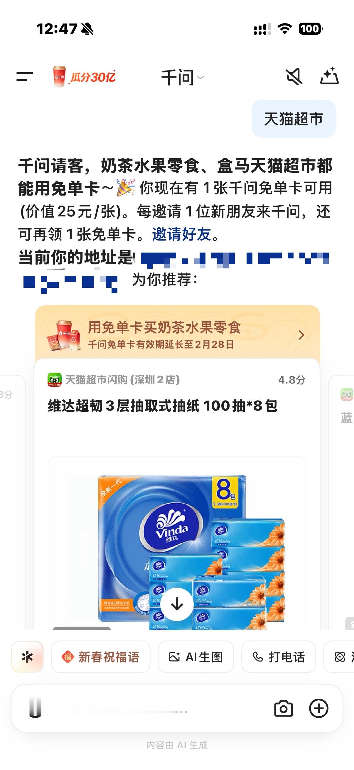 送奶茶、发福利真就随手一点,25块的购物卡也来了,买了一箱纸巾只要3块多,七哥自己的实测图一到图三大家看吧,就等快递了。千问这是实打实的福利,推荐大家下载薅一波羊毛。