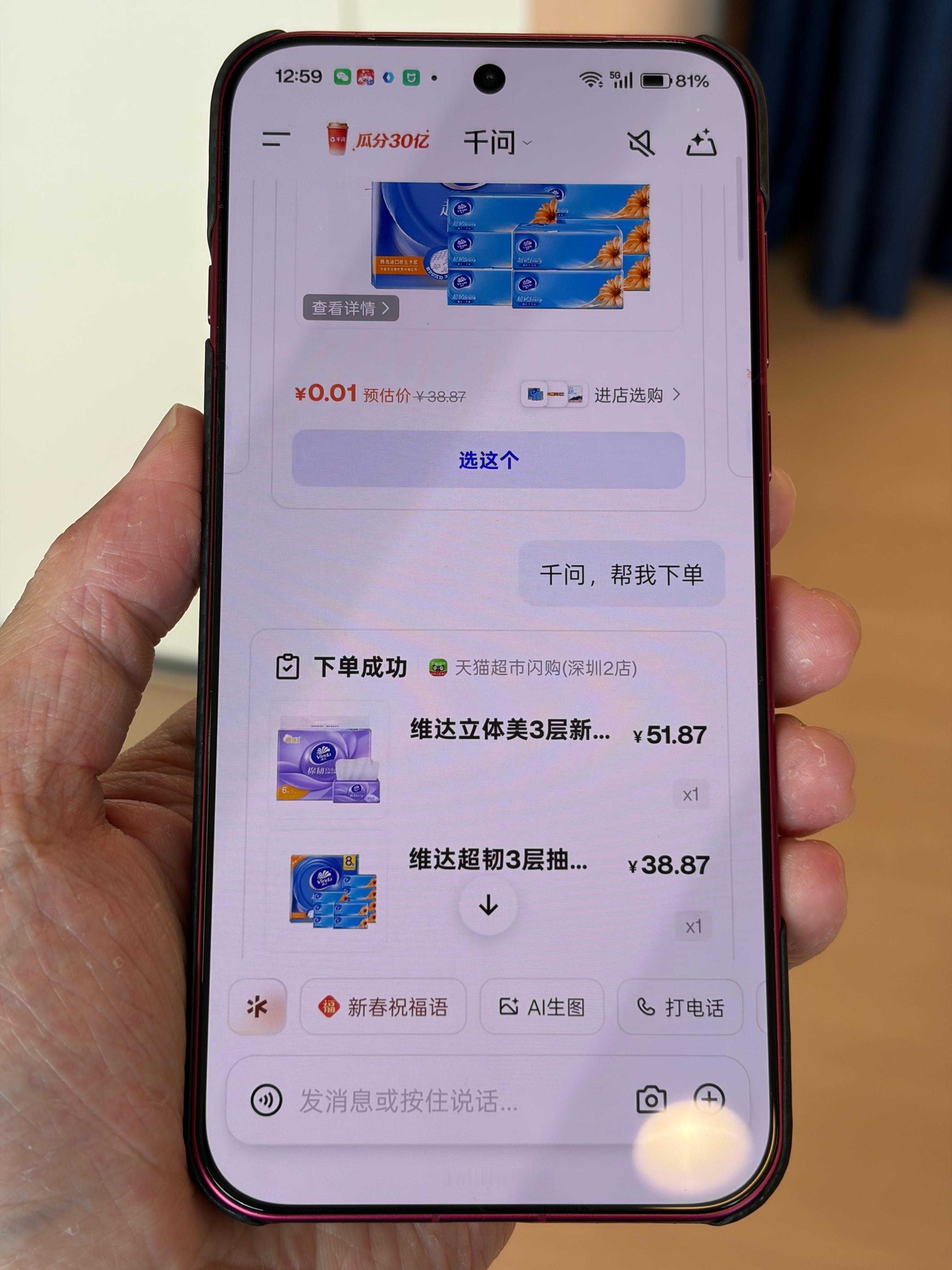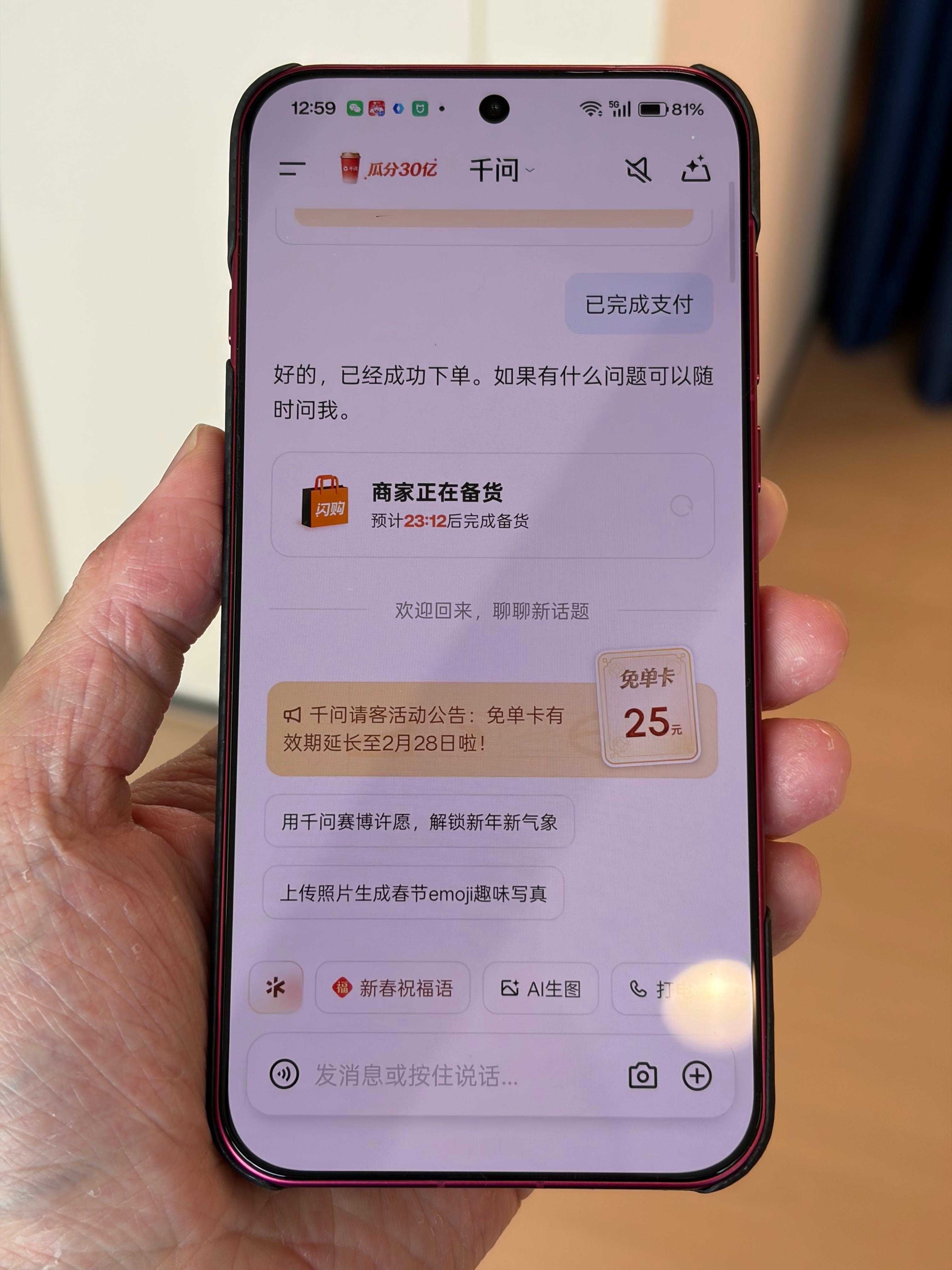 千问说买得开心过两天见前段时间身边朋友一直在给我分享千问的链接,一开始我还嫌